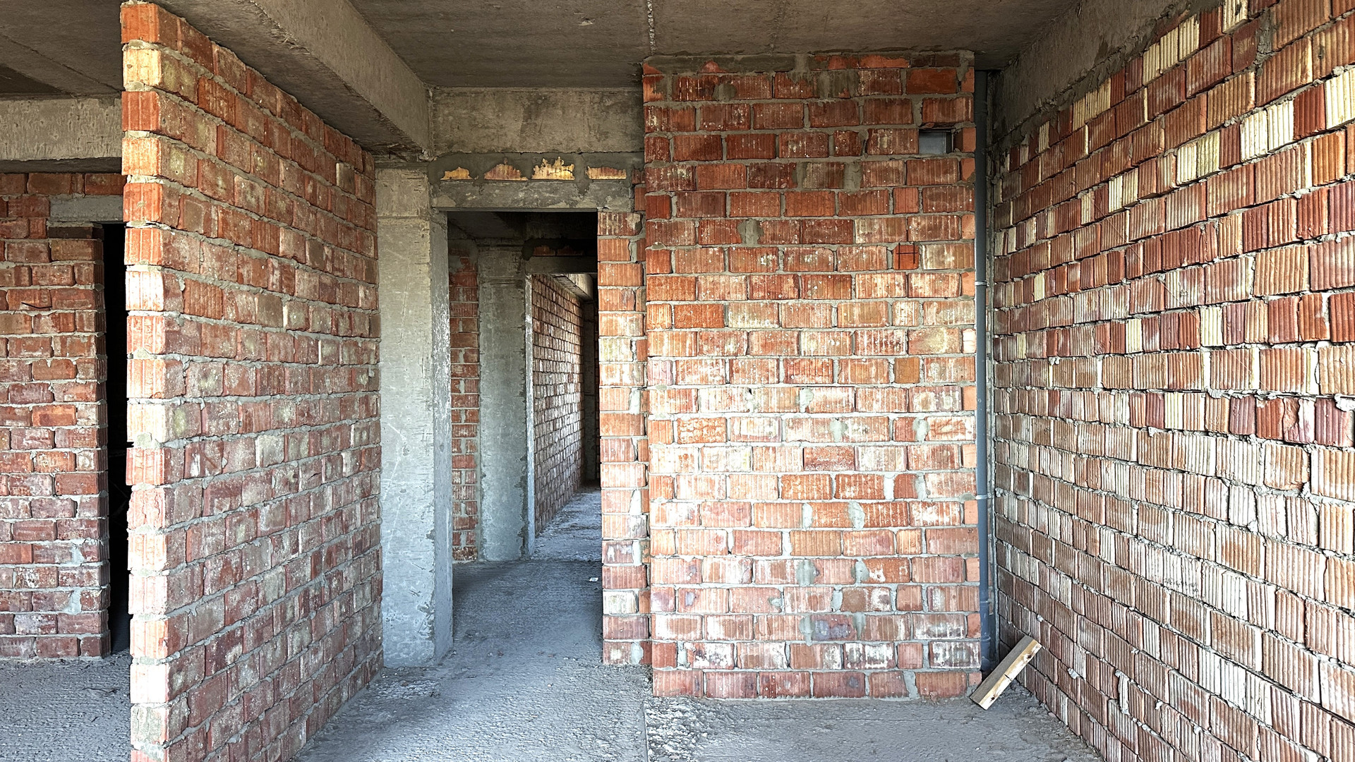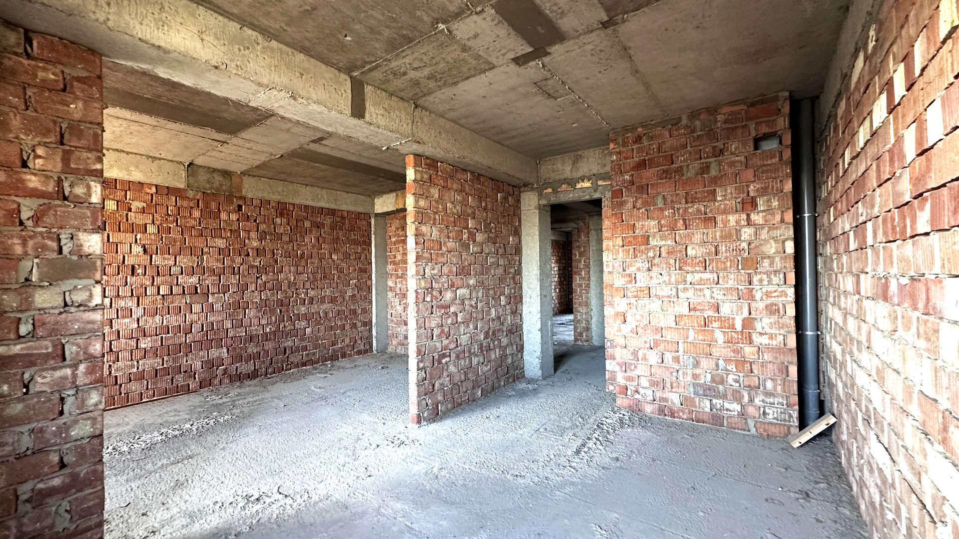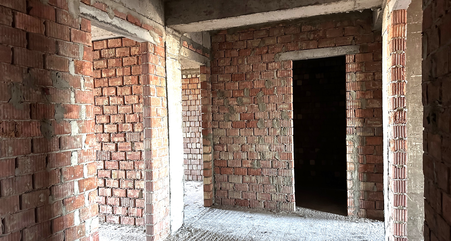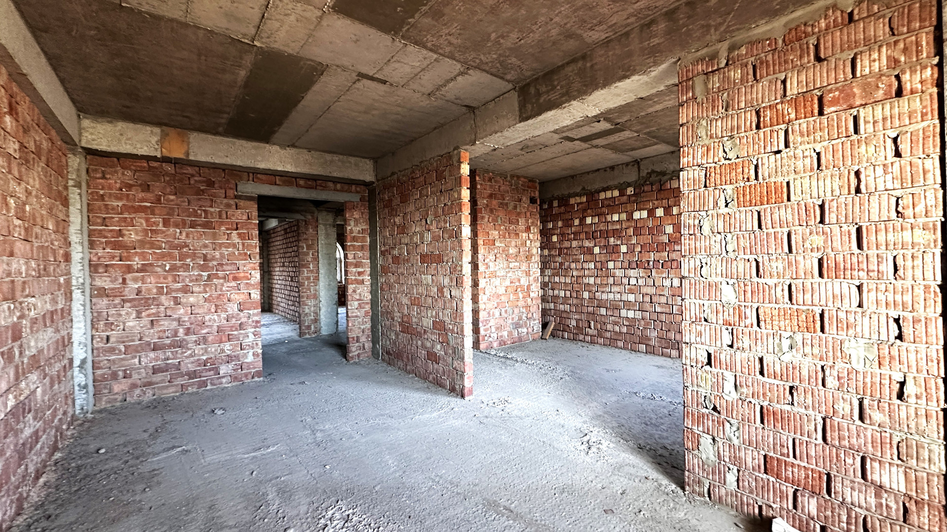- планировка - разносторонняя, перегородки из красного кирпича;