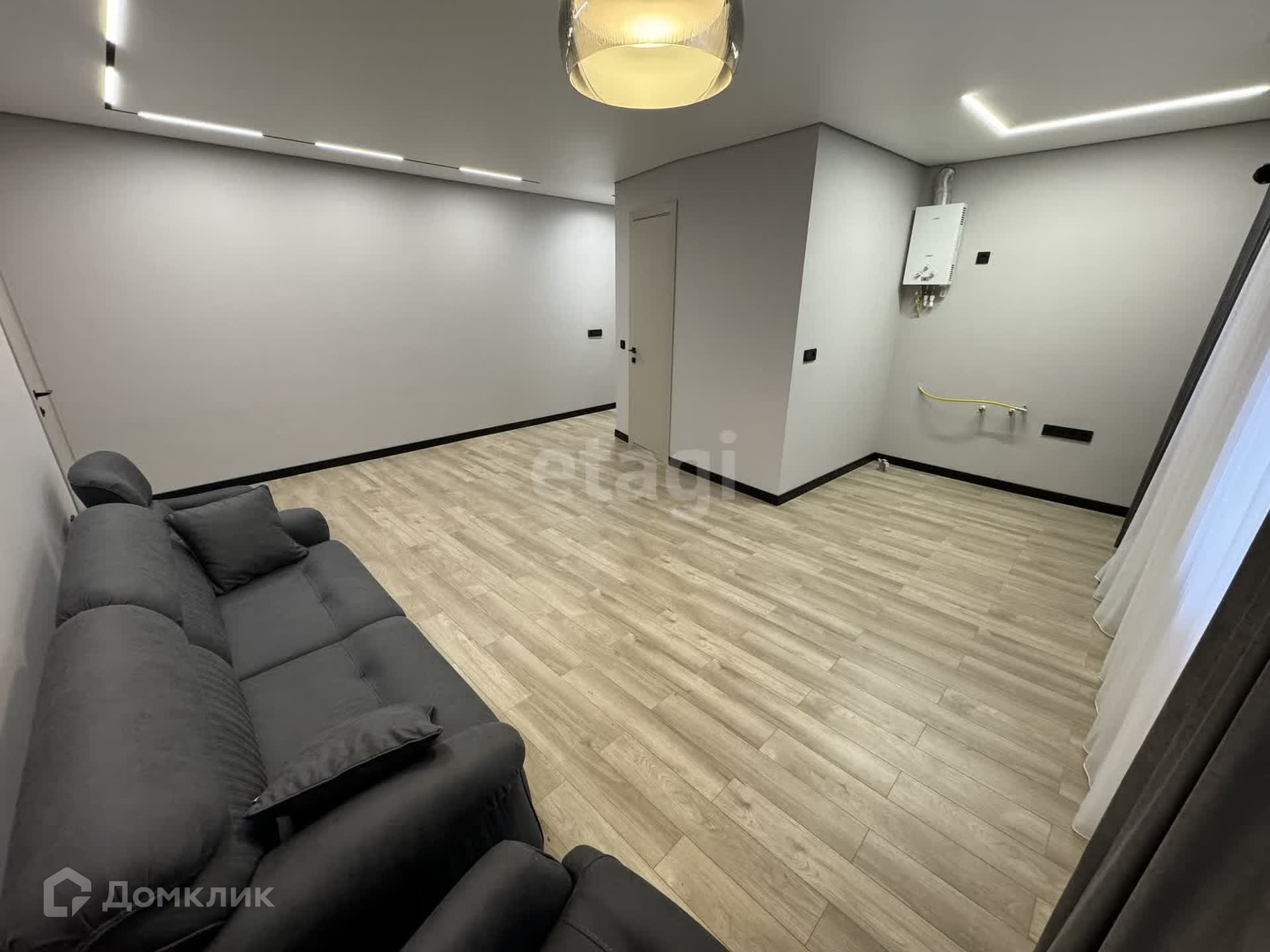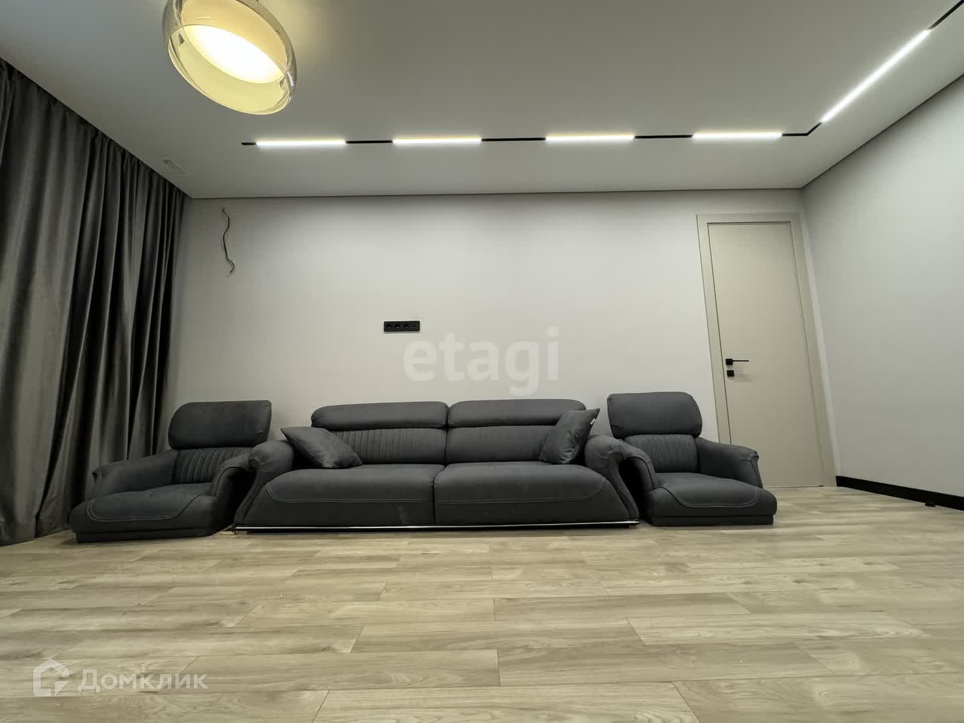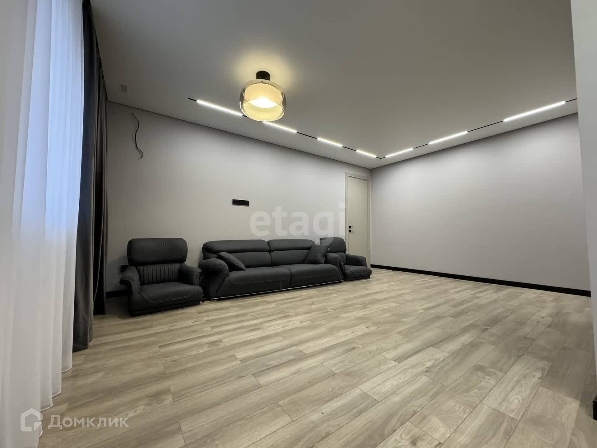 - Диван и занавес остается и провели красивое освещение всей квартиры, смотрится очень интересно.
