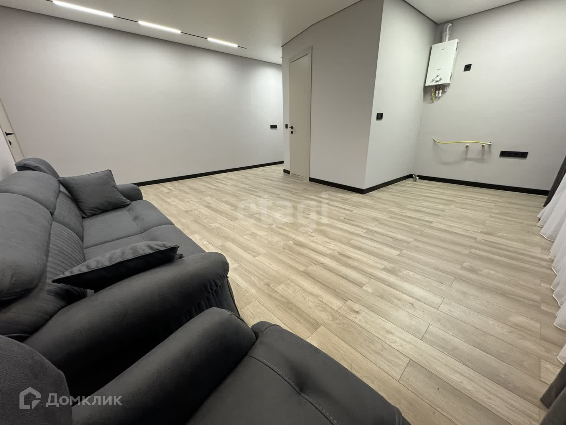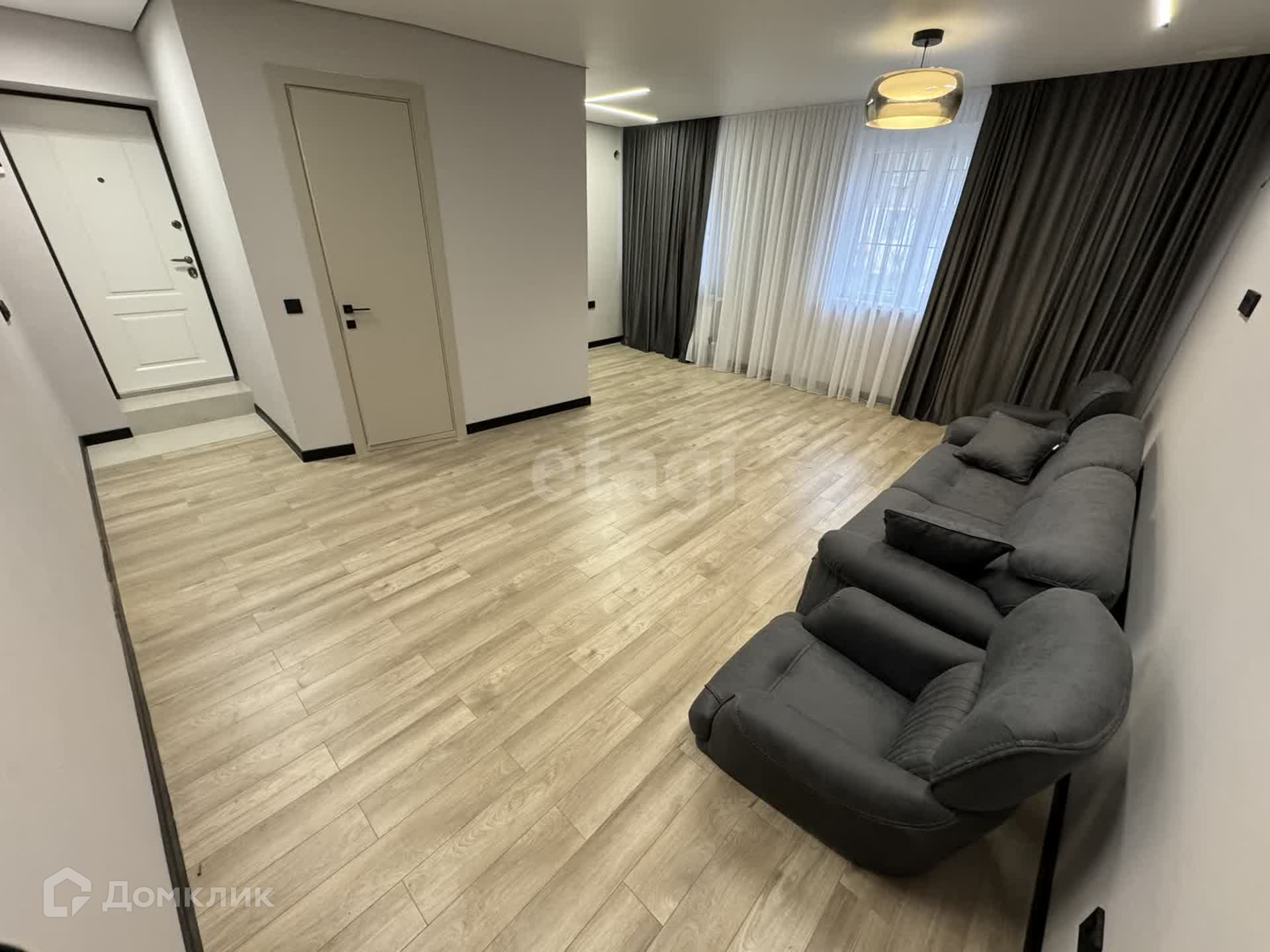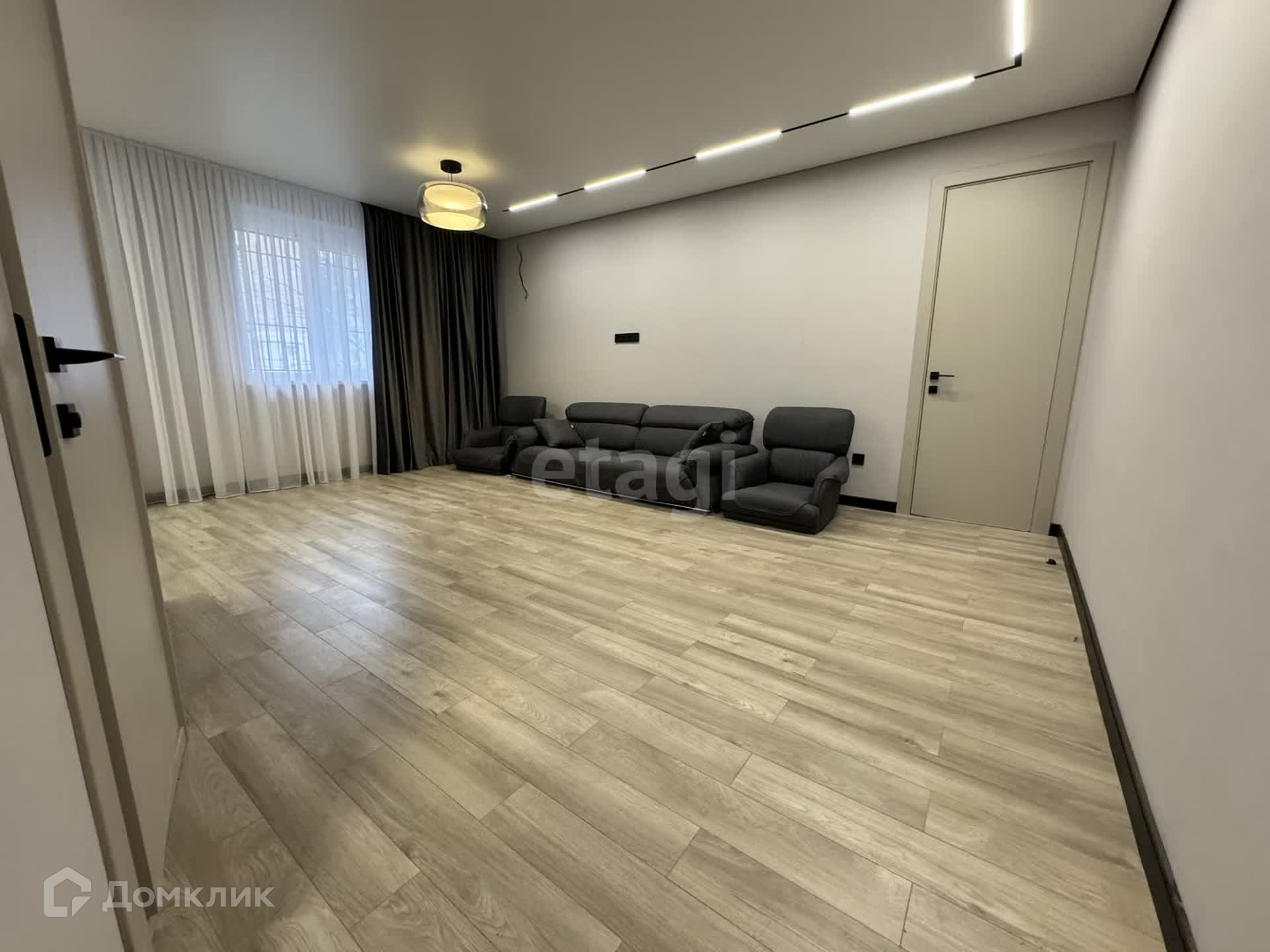 - Диван и занавес остается и провели красивое освещение всей квартиры, смотрится очень интересно.