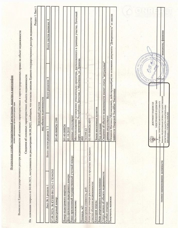 Стоимость недвижимости: