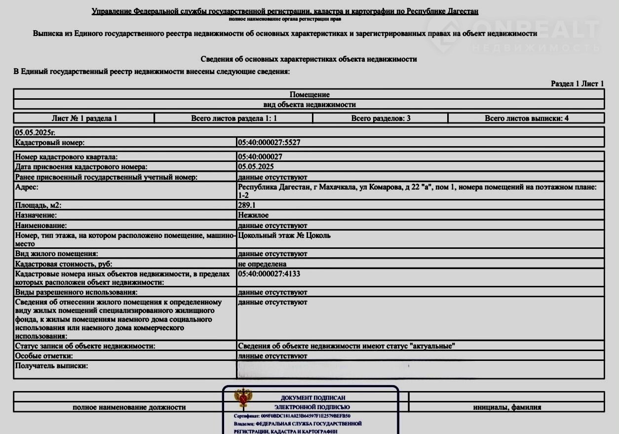 Помещение свободного назначения, 289.1 м2, на продажу в Махачкале, улица Комарова, 20А