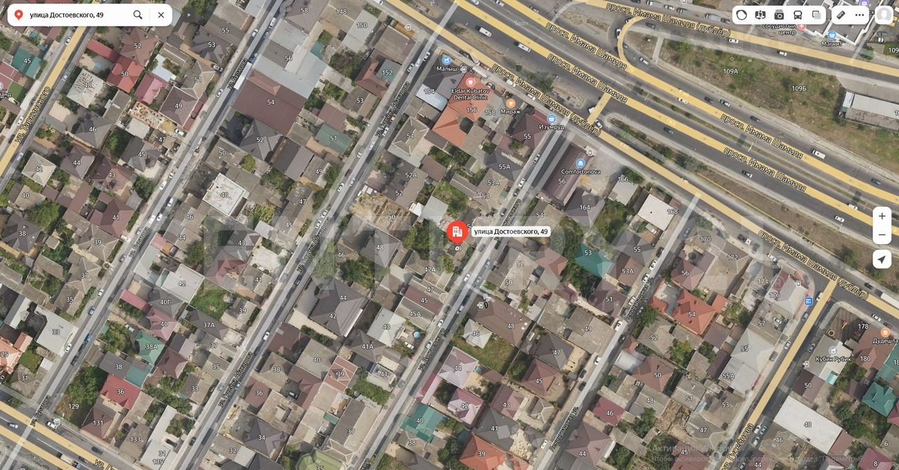Еще одним преимуществом участка является удобный выезд на пр-т И. Шамиля и так же на улицу Гагарина, что облегчает передвижение по городу.