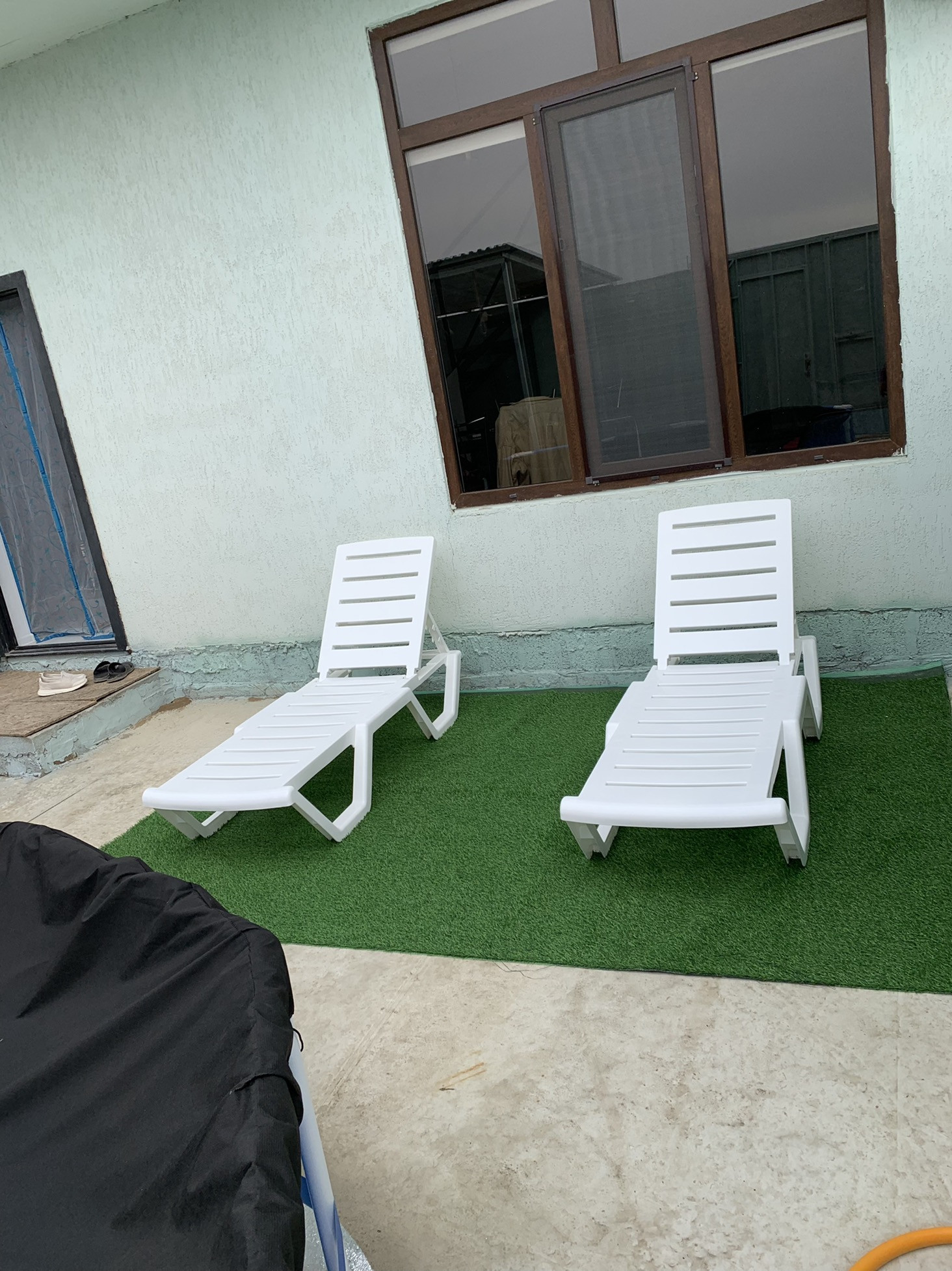 Во дворе душ,большой стол, стулья!