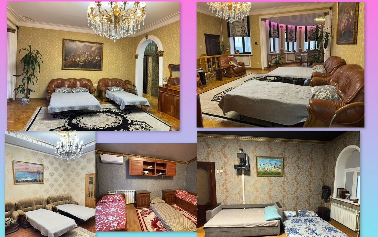 ⭕️ Два больших зала. На 2-ом этаже очень дорогая мебель и ковры: румынский кожаный холл, итальянская столовая мебель из красного дерева, итальянская спальная мебель, румынский стол и стулья, итальянская кухня и другое оборудование, очень дорогие натуральные шёлковые ковры, также дорогой ковёр из верблюжей шерсти на 1-ом этаже.