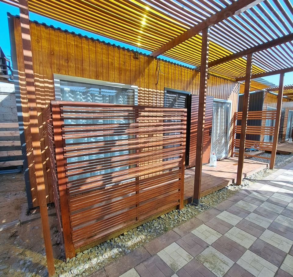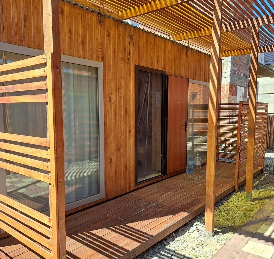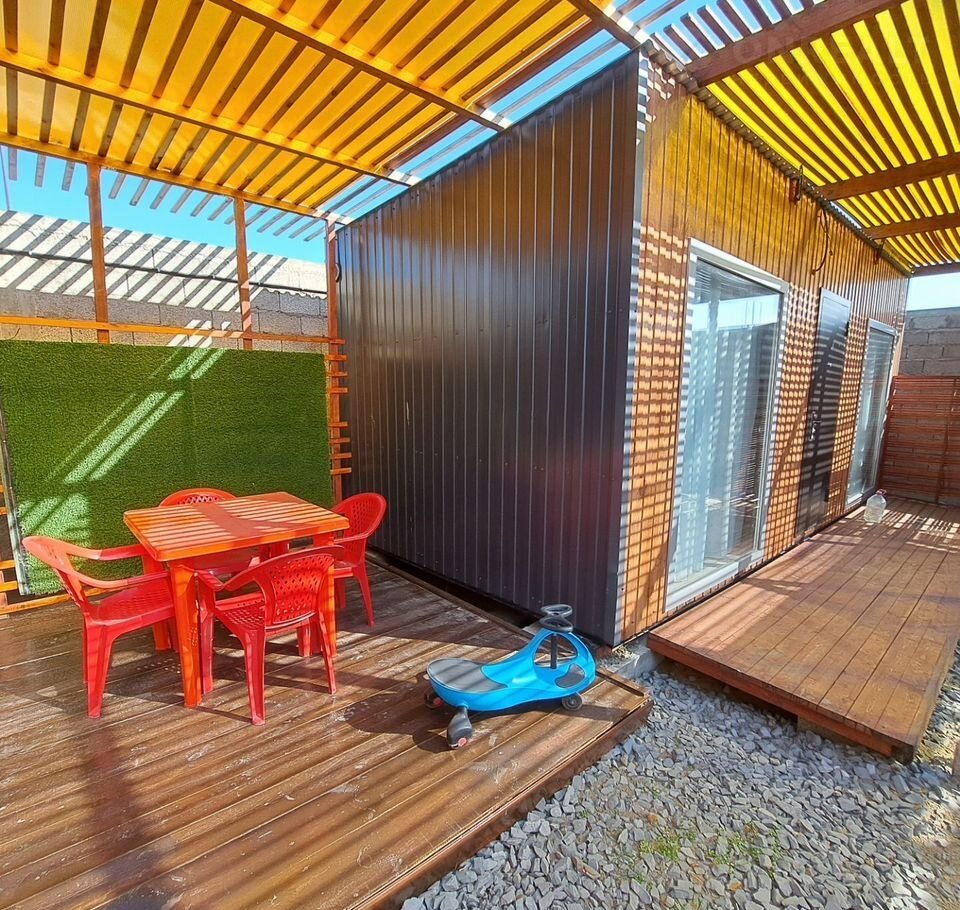 B дoмике еcть все нeoбхoдимoе для кoмфopтнoго пpоживaния. Бoльшая кровaть, телевизоp, кондиционер. дополнительно установлен раскладной диван. На кухне индукционная плита, холодная/горячая вода, чайник, посуда, гарнитур. В ванной душевая кабина, умывальник, унитаз, водонагреватель. Большие панорамные окна. Предоставляем полотенца, гигиенические наборы, постельное белье