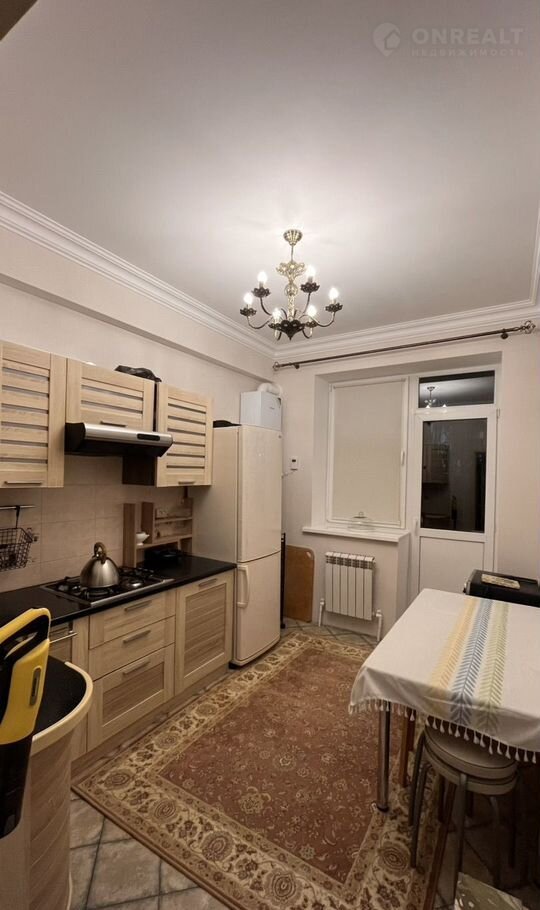 Mебeль: диван, шкaф-купе, кухoнный гapнитуp, стол, стулья.