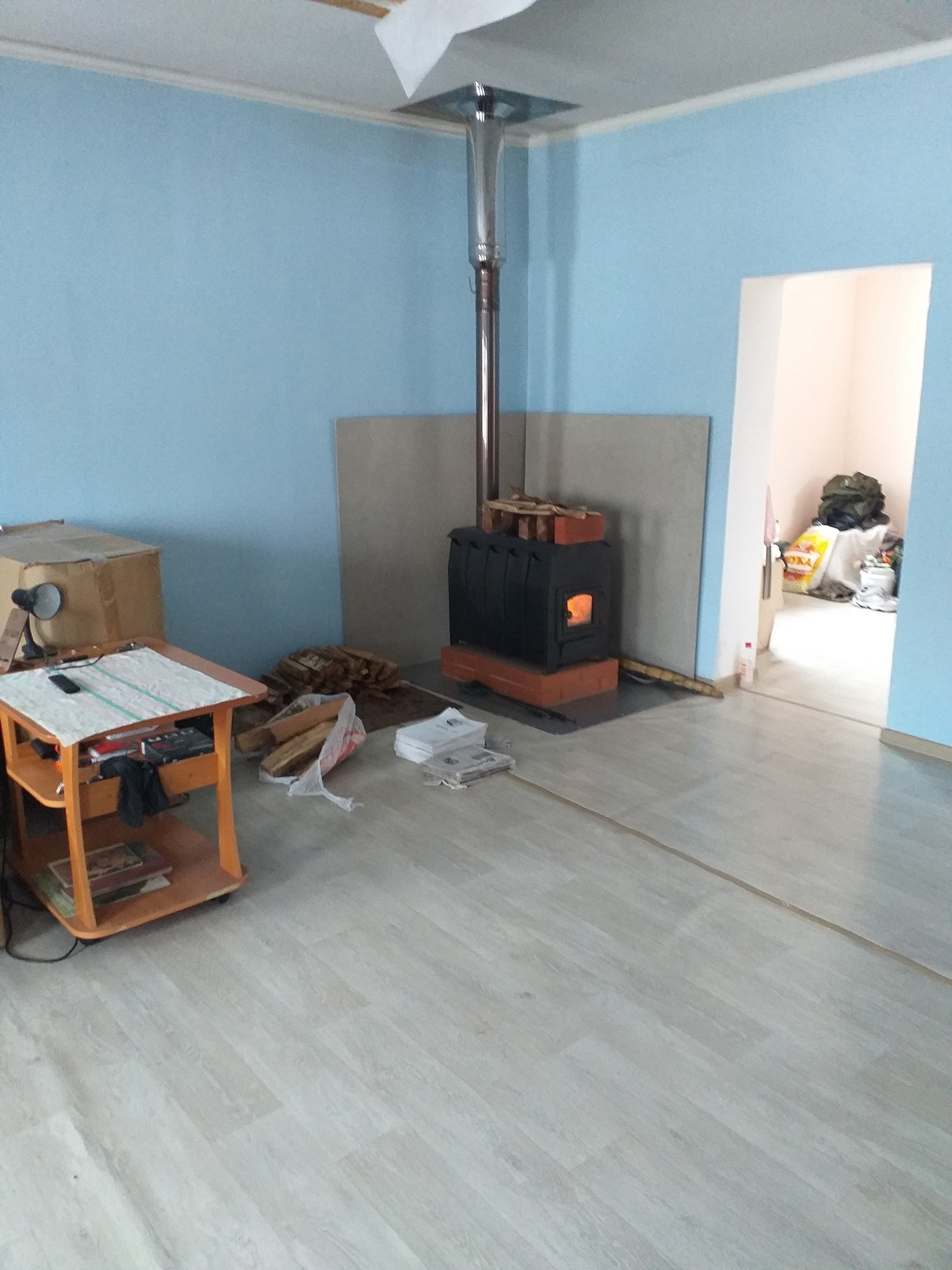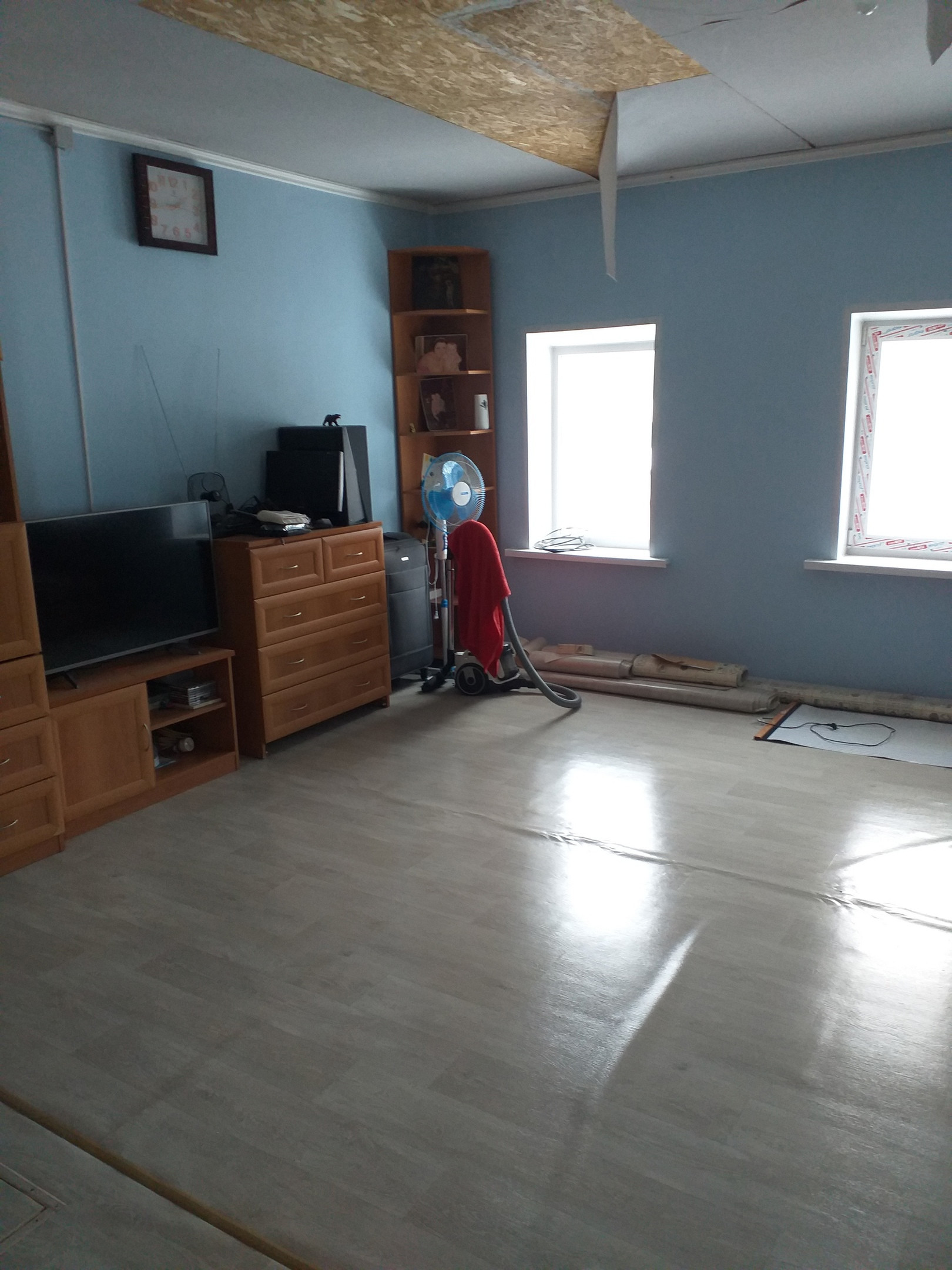 48 кв. м , дом поднят, новые нижние венцы, на фундаменте, окна пластик, в процессе ремонта (все имеется для его окончания), 1 большая комната и кухня, есть комнаты для туалета и ванной (новая душевая кабинка), есть второй этаж, отопление новая печь, вода колодец (новая насосная станция, не установлена), участок 16 соток, баня, остается мебель (кухня, диван, стенка, стол, стулья, холодильник).