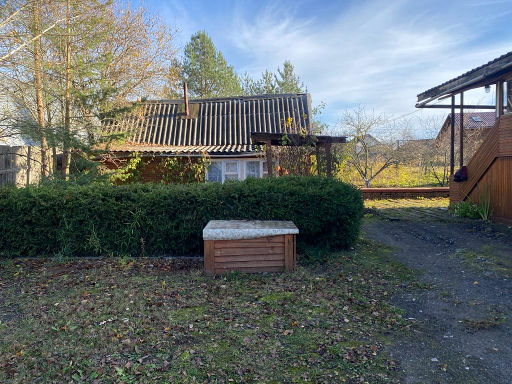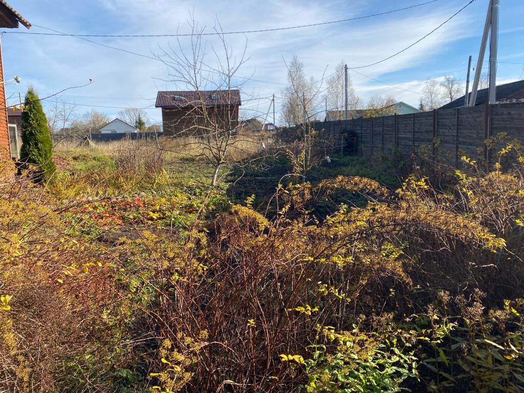 Участок огорожен деревянным забором по периметру, имеется заезд во двор для машины. На участке баня, хоз. постройки, два гаража, плодовые насаждения.