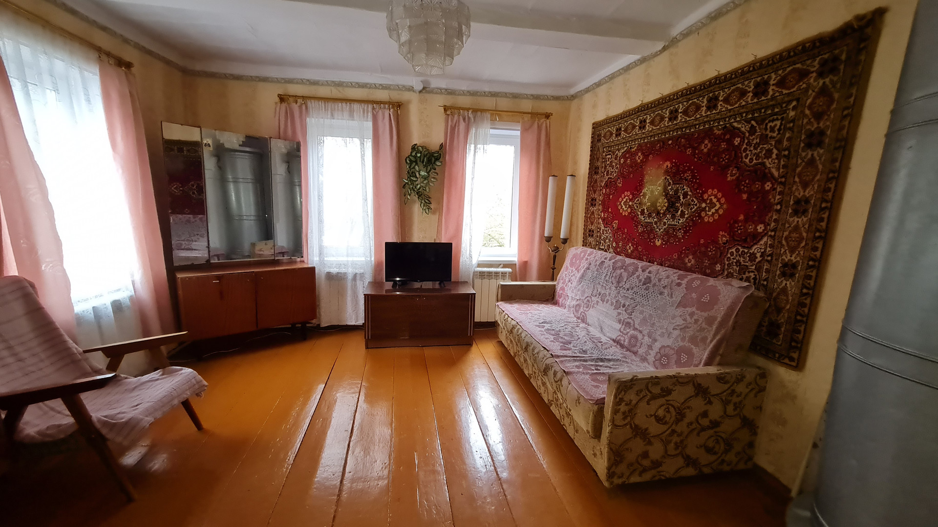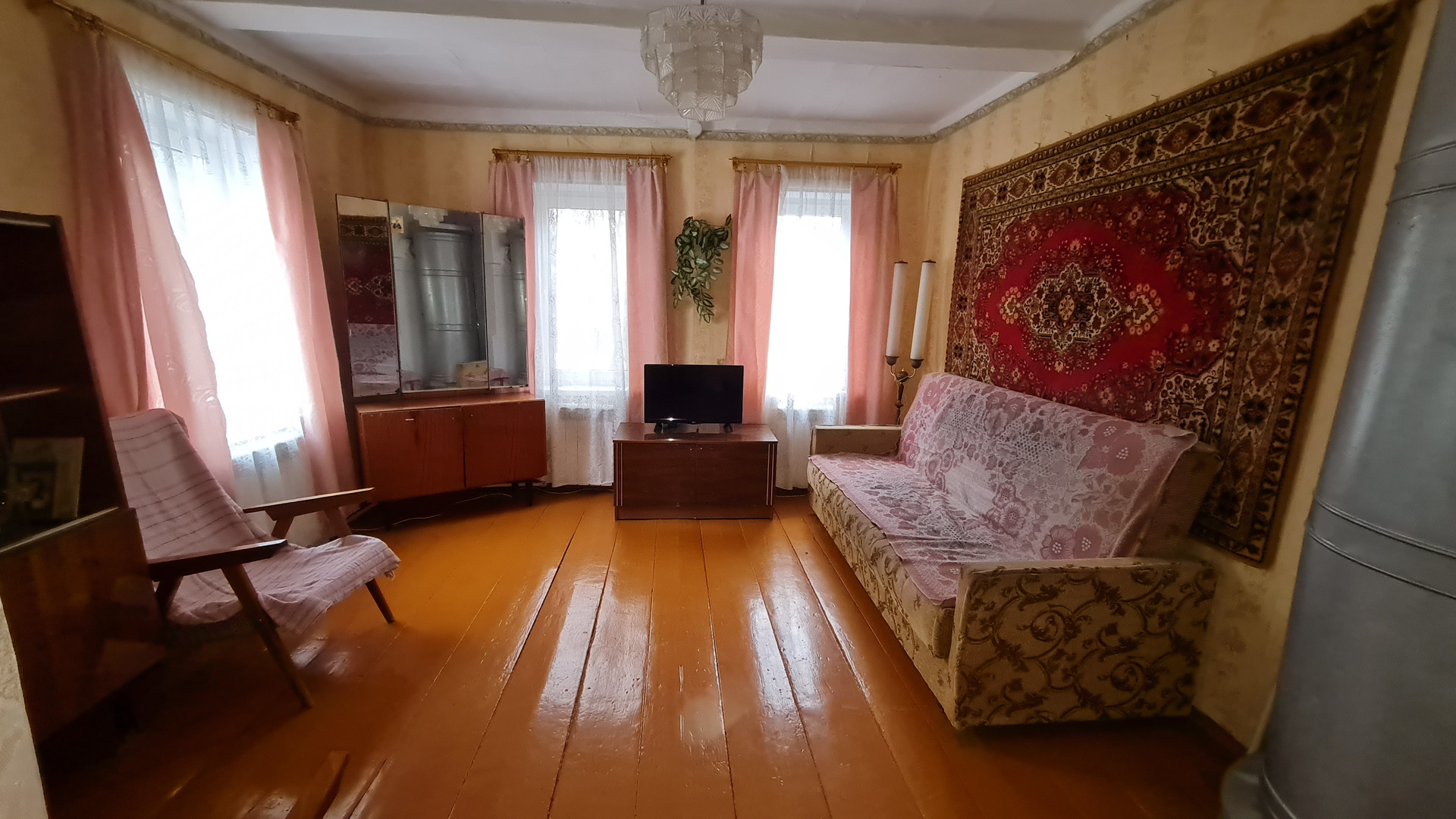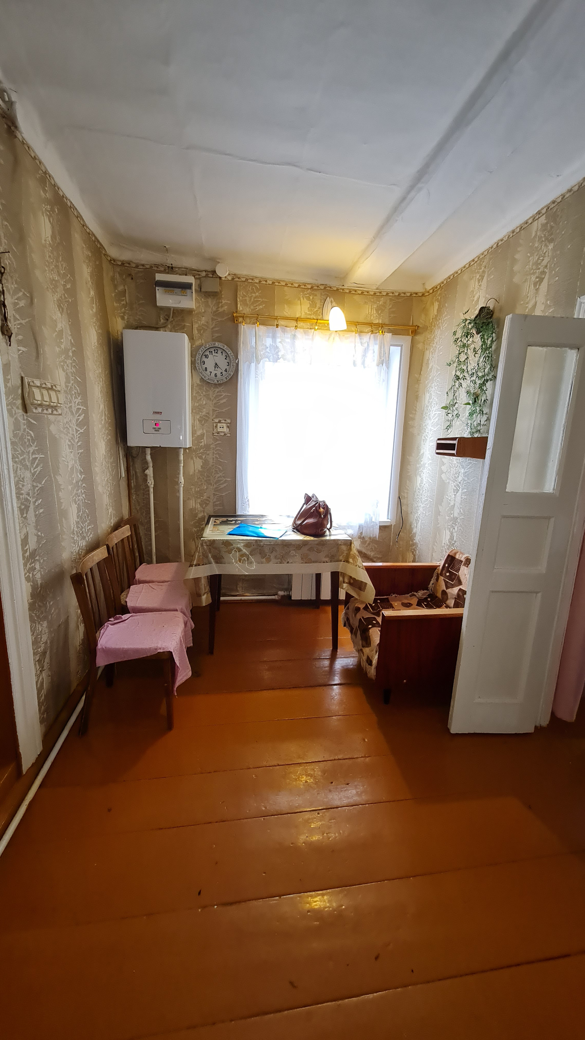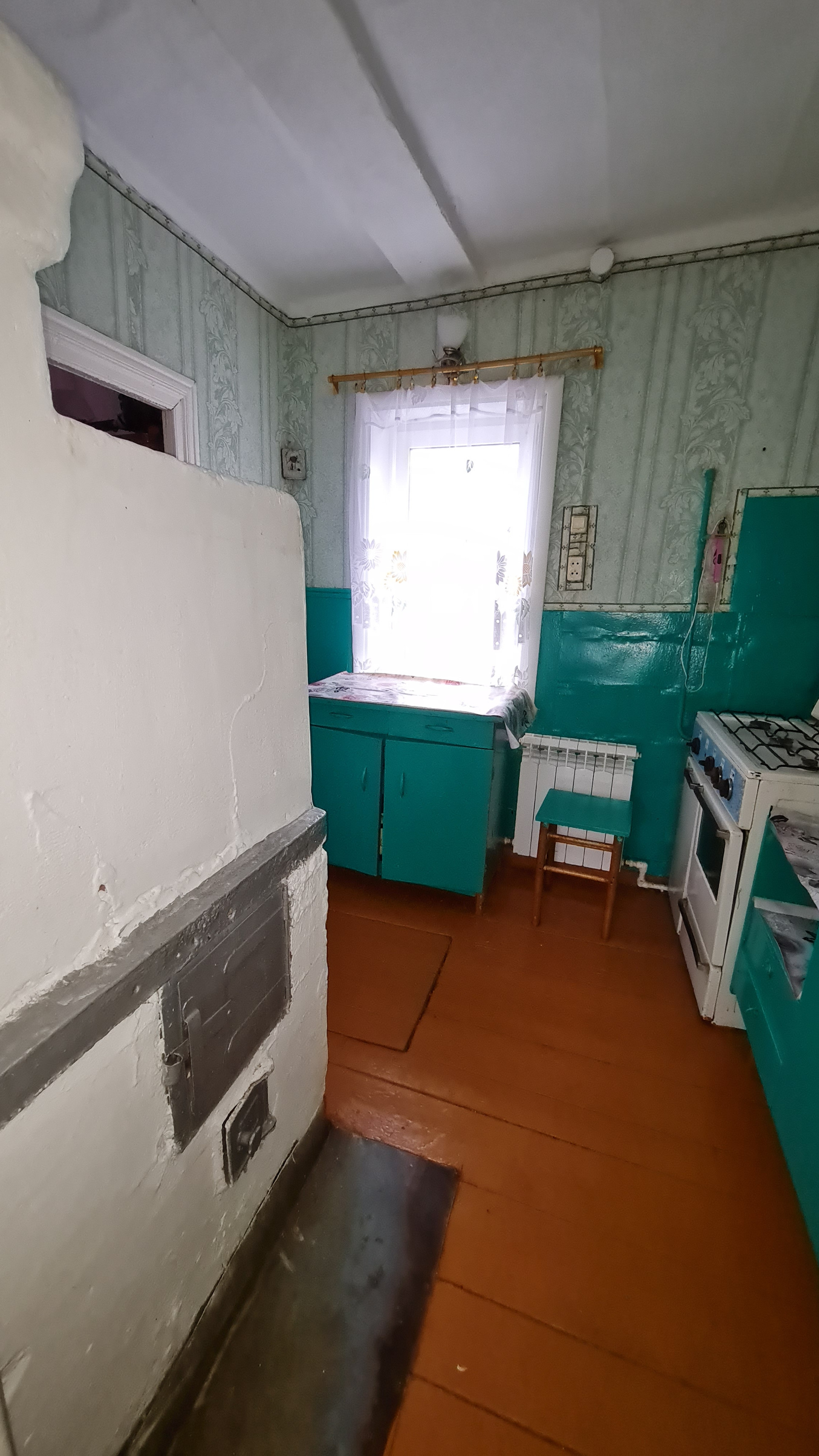 бревенчатый, фундамент - бетонные столбы, 40м.кв., 2 раздельные комнаты, кухня, прихожая, пристройка (туалет, кладовая), окна пластик, отопление электрический котел, есть печь, стояк. В доме очень чисто. Земельный участок 15 соток, на участке баня, яблони, сливы. Подъезд хороший, асфальт, не далеко есть магазин. Вдоль границы участка тянут газ.