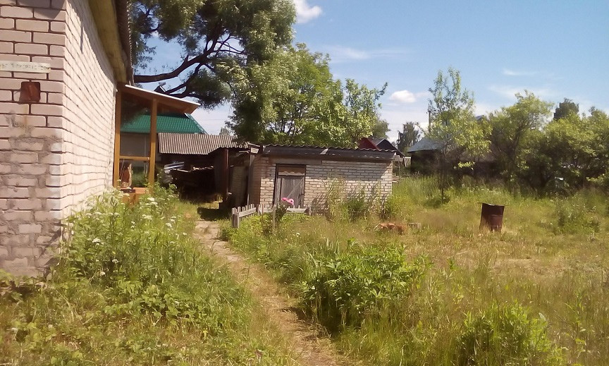 На участке баня кирпичный сарай. Участок сухой, ровный.