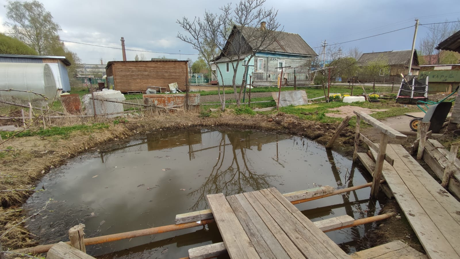 К дому хороший подъезд-асфальт. На участке баня (действующая), большой гараж, пруд, теплицы и грядки.