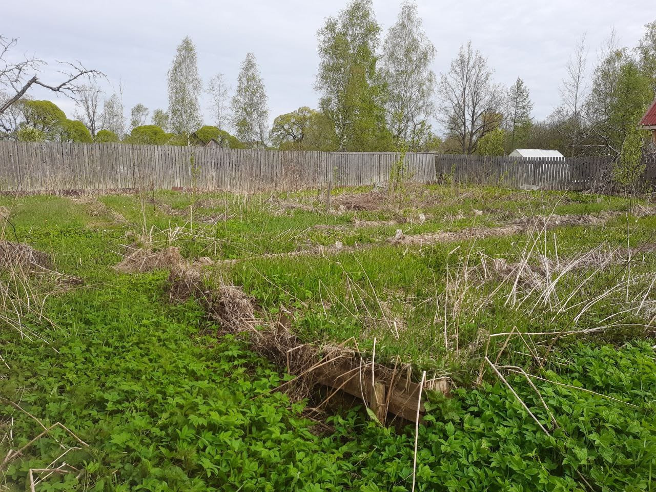 - Ограждение: Участок полностью огорожен