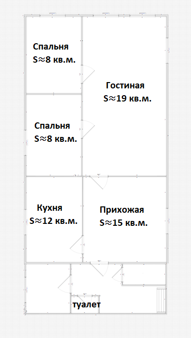 -  Включает три комнаты, кухню и прихожую