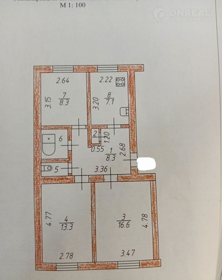 Общая площадь 58.1 м2