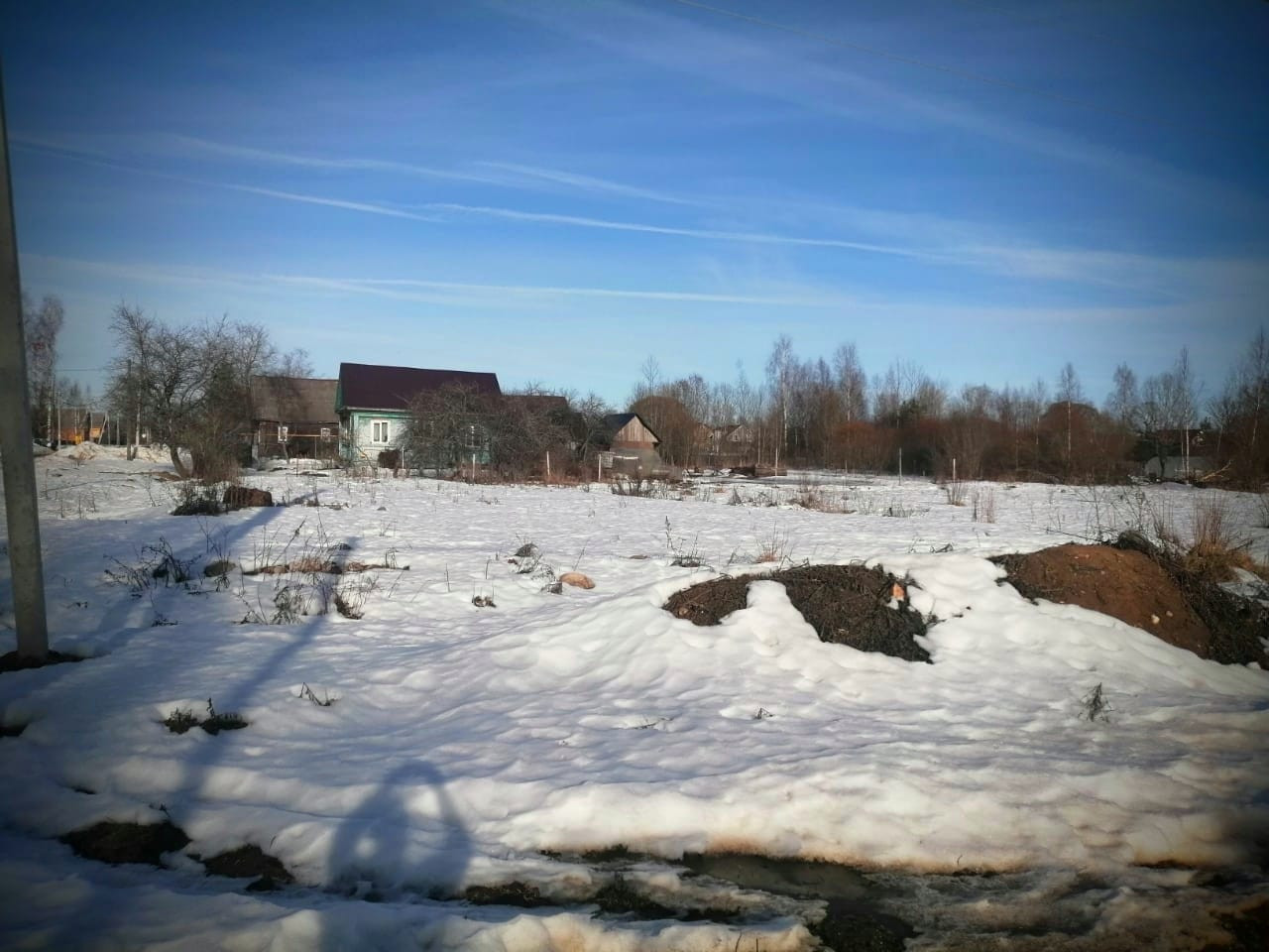 Участок расчищен, отсыпан. Проложена труба для заезда на участок. Рядом проходит газ, центральная вода.
