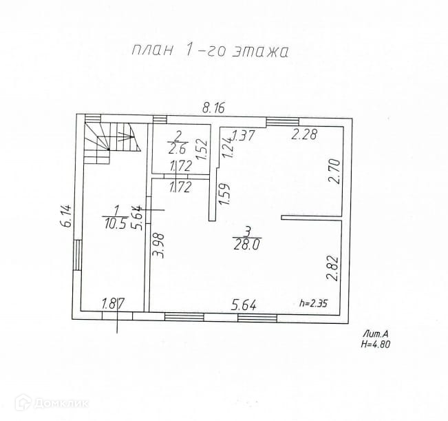 1 этаж: прихожая 10,5 кв.м., санузел 2,6 кв.м, кухня-гостинная 28 кв.м.