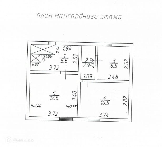 2 этаж: две жилые комнаты 12,6 и 10,5 кв.м., гардеробная 6,5 кв.м.