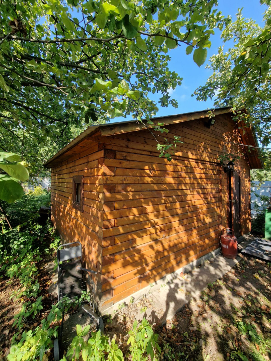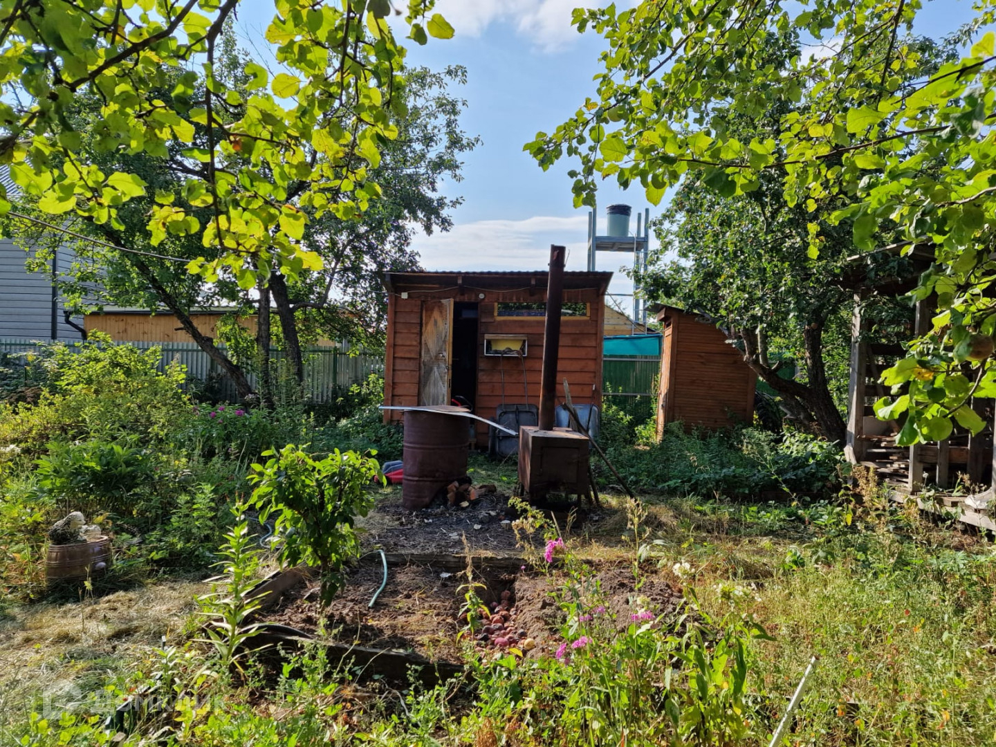 На участке баня из бруса 3Х4, сарай, уличный туалет, летний душ.