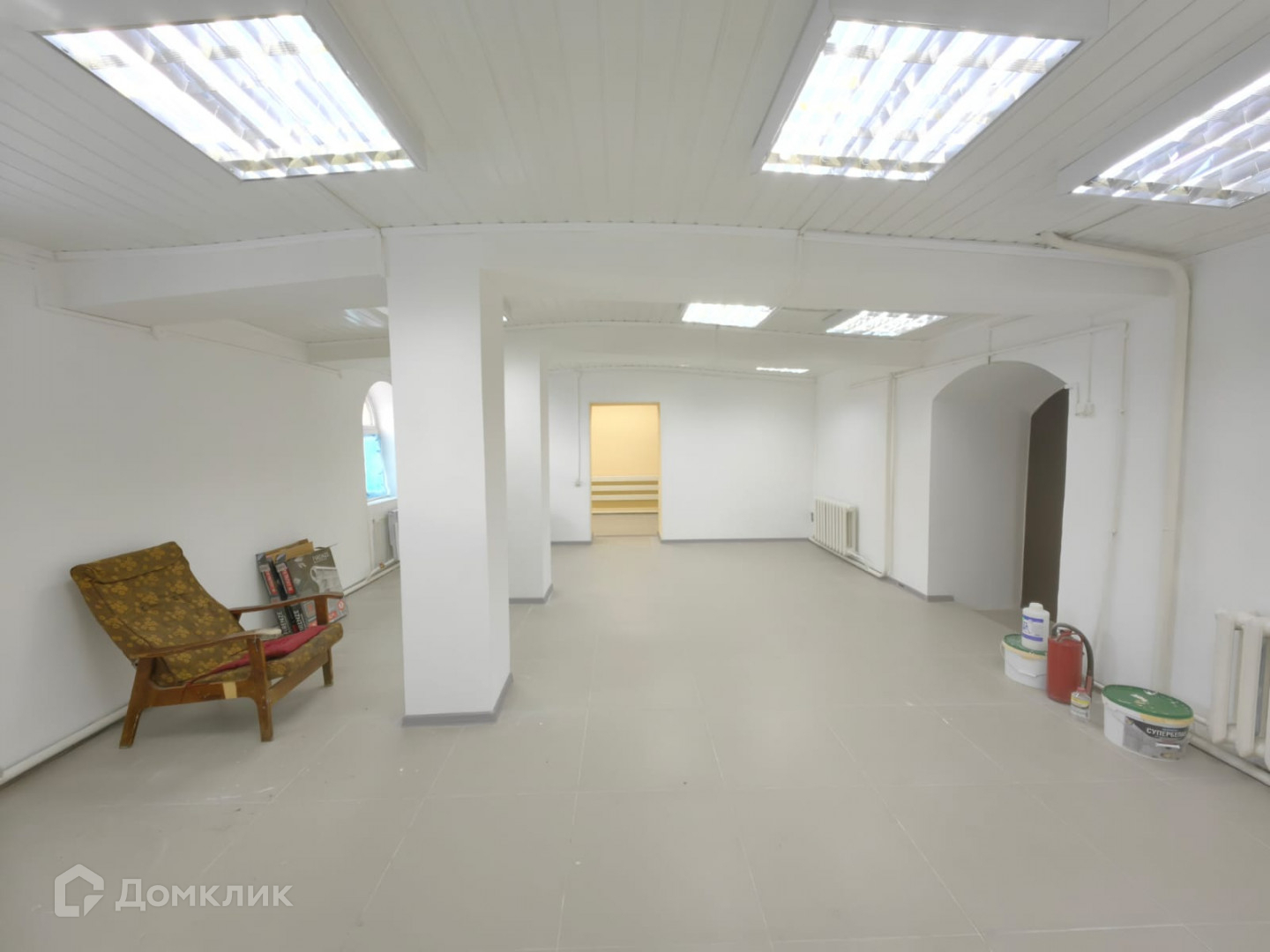 В помещение выполнен свежий ремонт, внутри просторно и светло. Окна необычной формы, арки на входных группах.
