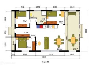Общая площадь: 90 м2