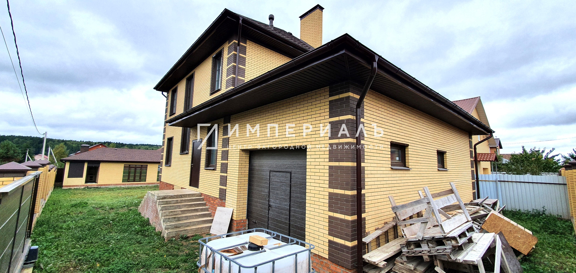 Дом: 171,5 кв.м, фундамент – ленточный+ монолитная плита, стены-кирпич+ газосиликатный блок+ облицовочный кирпич, межэтажное перекрытие-монолитная плита, лестница сделана из бетона, кровля-мягкая черепица + утепление + водосточная система. Окна-ПВХ (ламинированные двойные стеклопакеты).