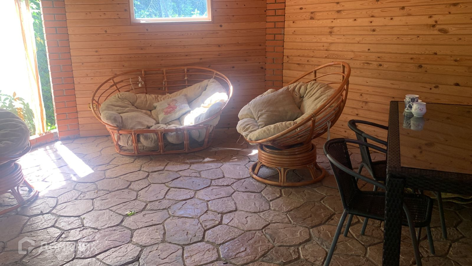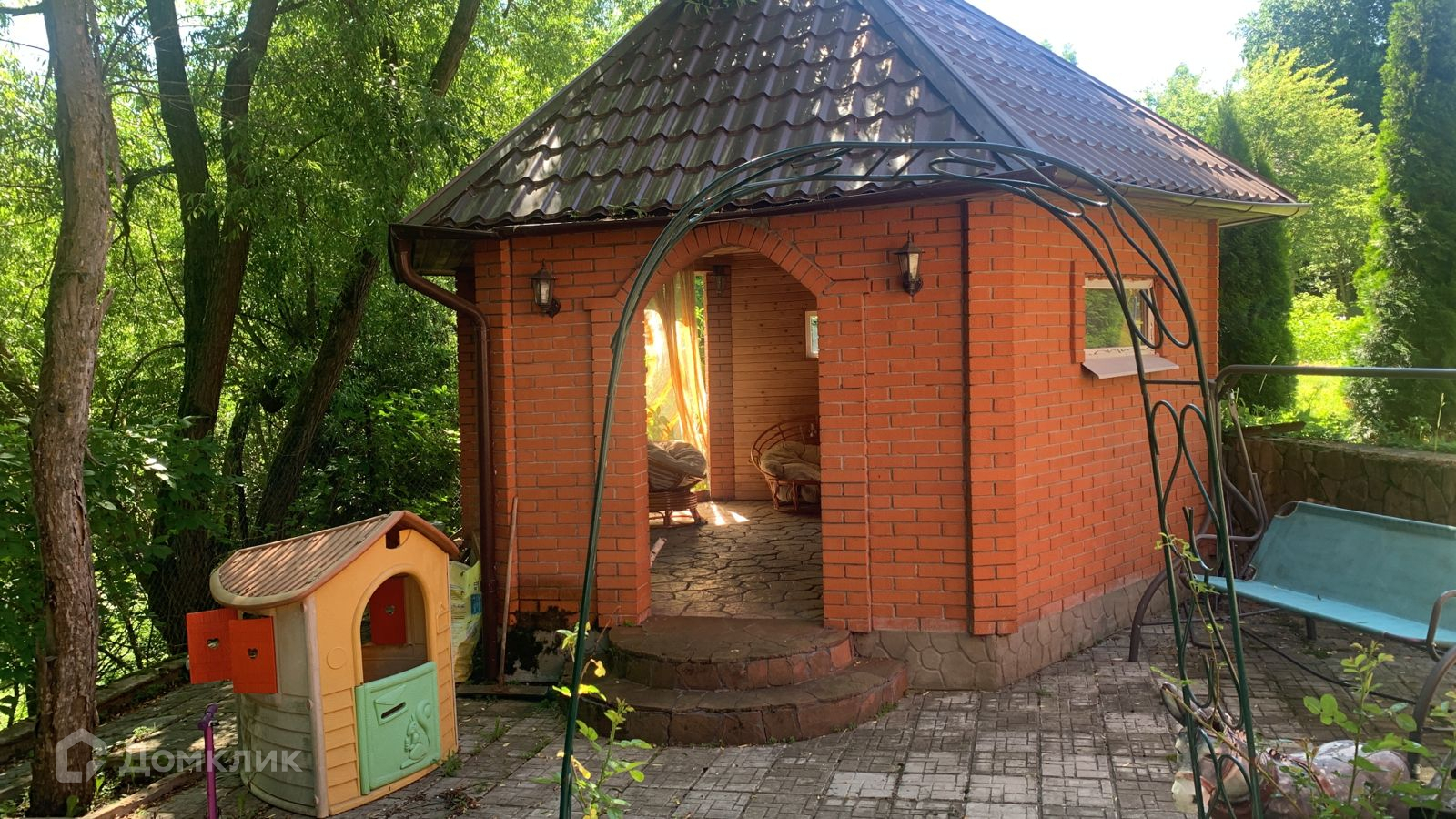 На участке: детская площадка, беседка для отдыха до 10 человек, вольер для собаки.