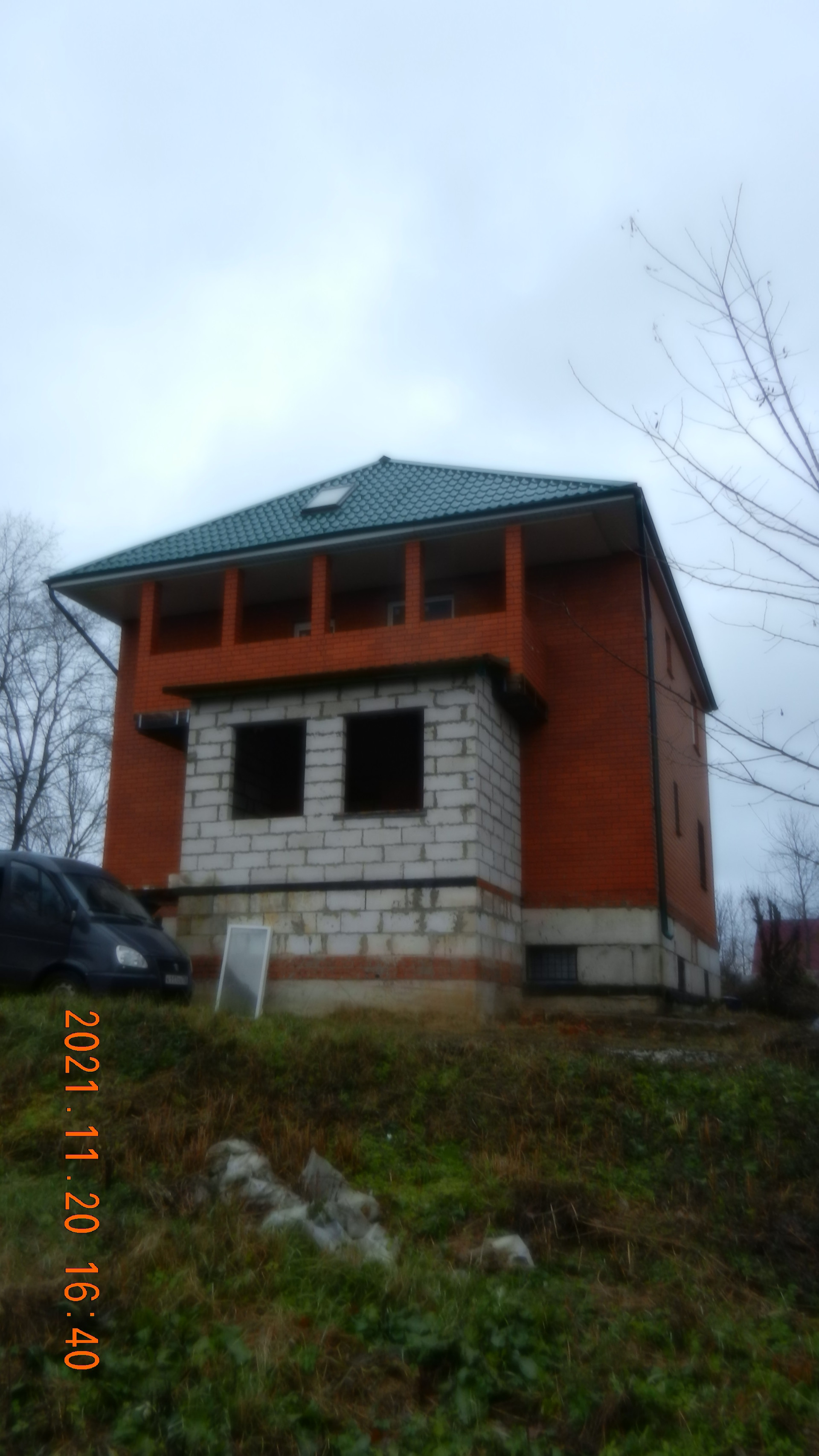 Продаётся жилой дом. Площадь застройки 10мХ10м. В площадь дома, по документам, не учтена площадь подвала и чердака. Дом очень тёплый. Стены цокольного этажа (подвал) - железобетонные блоки. Подвал под всем домом (10мх10м), гидроизолирован и сухой. Перекрытия между подвалом и первым этажом - железобетонные плиты. Стены дома - газоблоки толщиной 30 см, утеплитель 10 см, и полуторный облицовочный кирпич. Бетонное перекрытие между первым и вторым этажом. Крыша (металлочерепица) четырёхскатная, с двумя мансардными окнами. Перекрытие между вторым этажом и чердаком деревянное с утеплителем. Полы чердака - половая доска толщиной 5 см. На втором этаже кирпичный балкон. На первом этаже пристроена веранда. На первом и втором этаже установлены пластиковые окна. Окна первого этажа и подвала защищены металлическими решётками. Без внутренней отделки. В дом проведён свет и вода (центральный водопровод), канализация (2 колодца на участке). Участок прямоугольной формы, есть фруктовые деревья и кустарники. Удобный подъезд к участку.