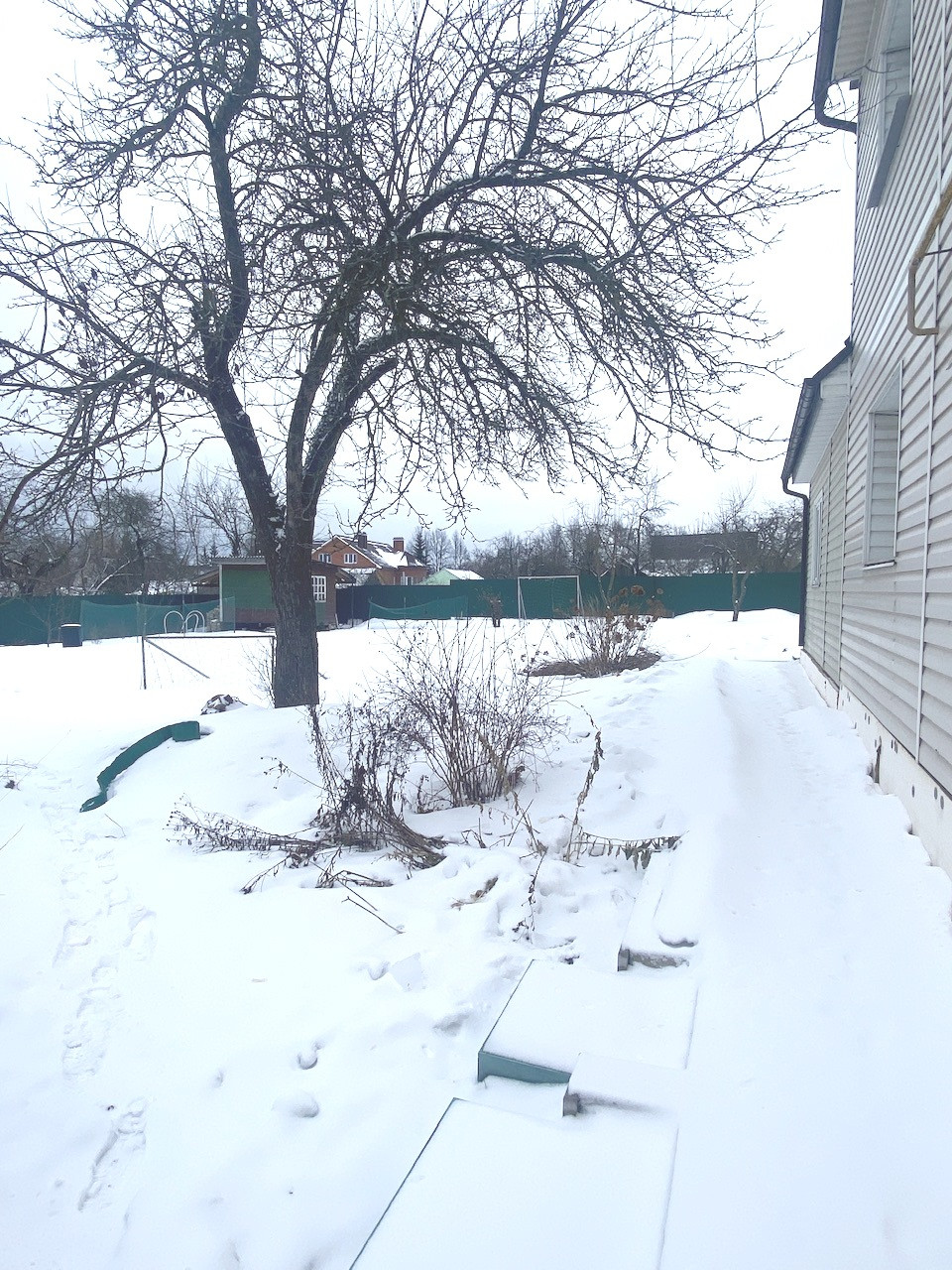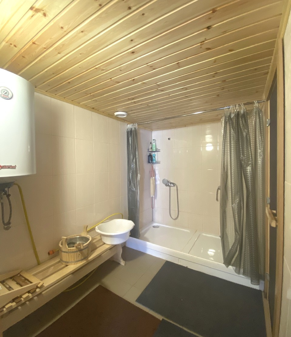 На территории участка, есть навес для автомобиля, навес для зоны барбекю, а так же отдельно стоящая дровяная баня.