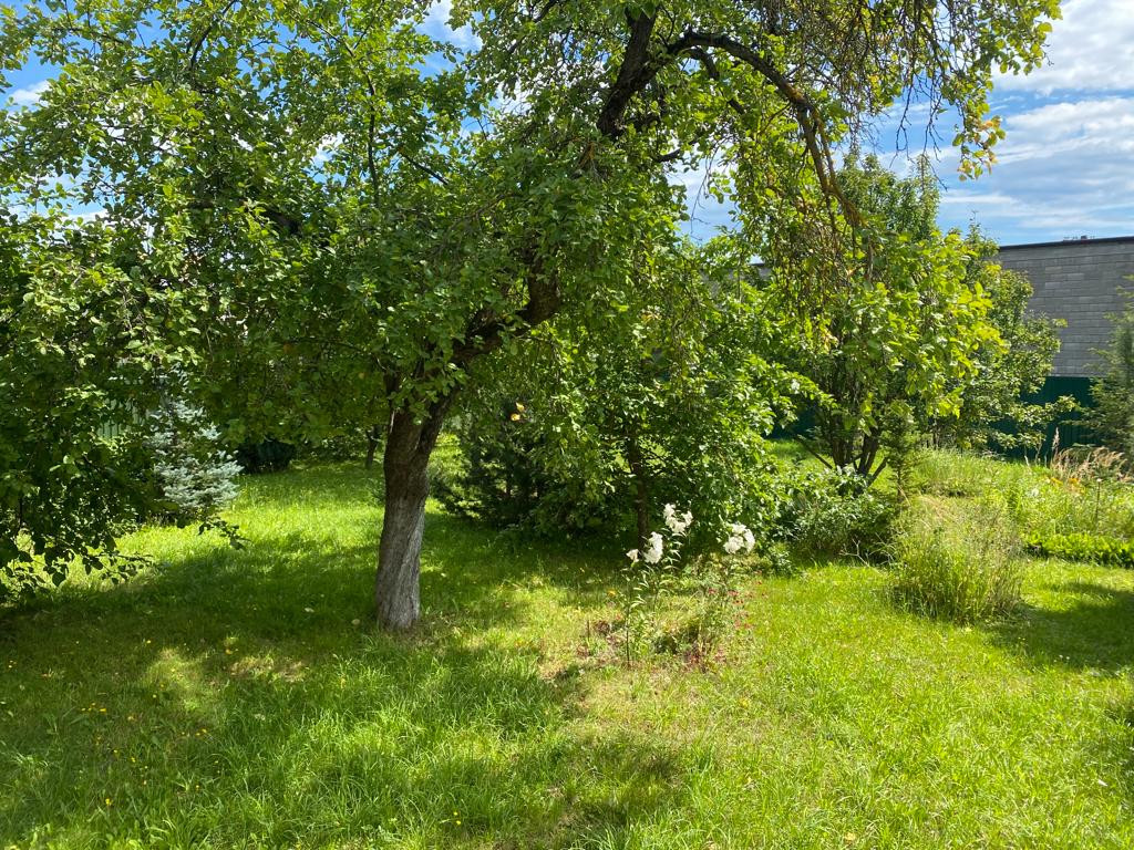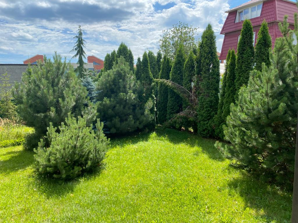-Учacток ровный, правильной формы, плодовые деревья, сосны, туи, ели;