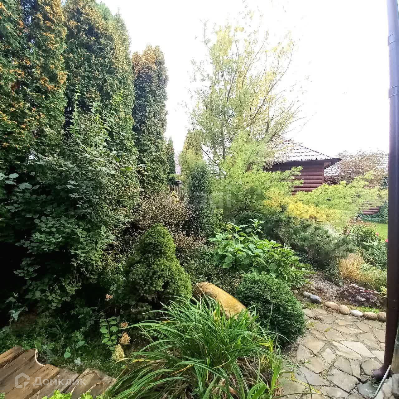 - Участок огорожен, по периметру растут туи, дорожки из натурального камня, высажен рулонный газон, альпийская горка, ландшафтный дизайн.