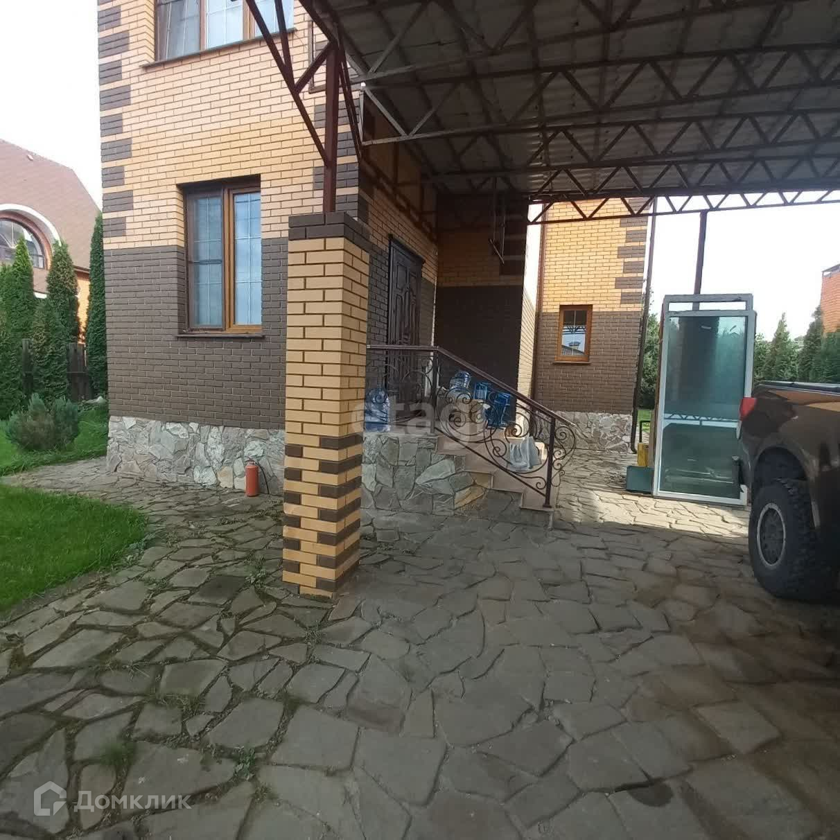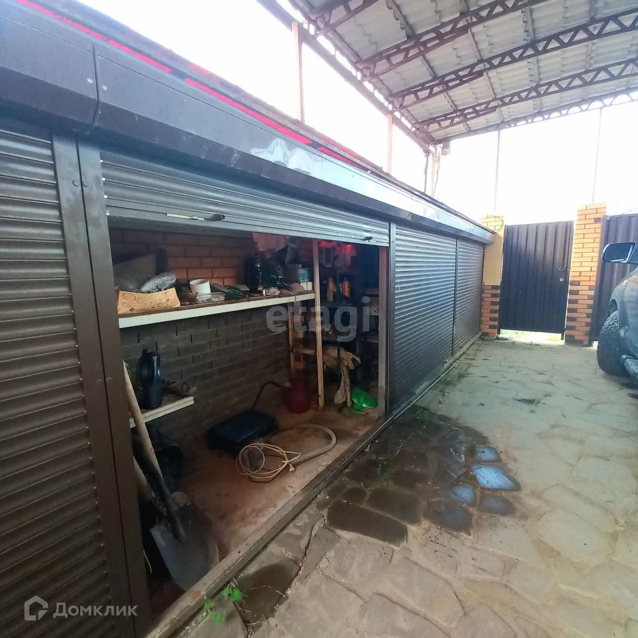 - Автоматические въездные ворота, парковка на два автомобиля с навесом и с тех.помещением под хранение.