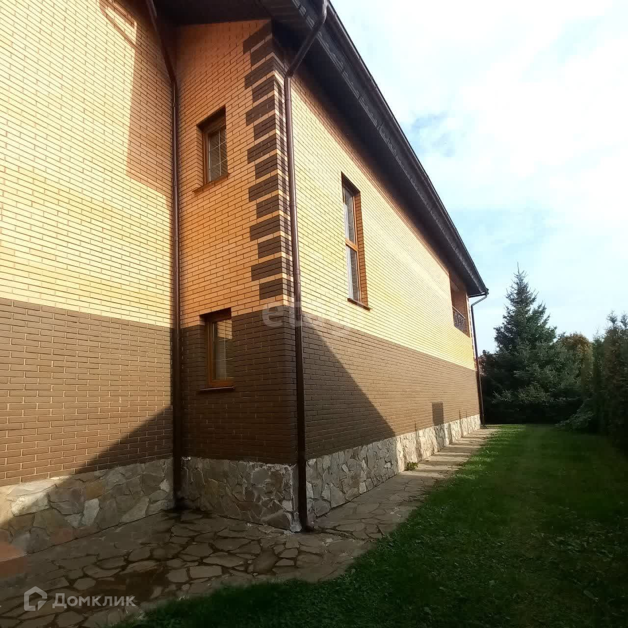 - Дом площадью 215,6 кв.м, большой балкон и мансарда. Фундамент ленточный плюс монолитная плита, стены: пеноблок+вент.зазор+фасадный кирпич, кровля: металлочерепица+утепление+водосточная система. Окна: ПВХ ламинированные двойные стеклопакеты. Система вентиляции. Цоколь дома, отмостка и парковка сделаны из натурального камня.