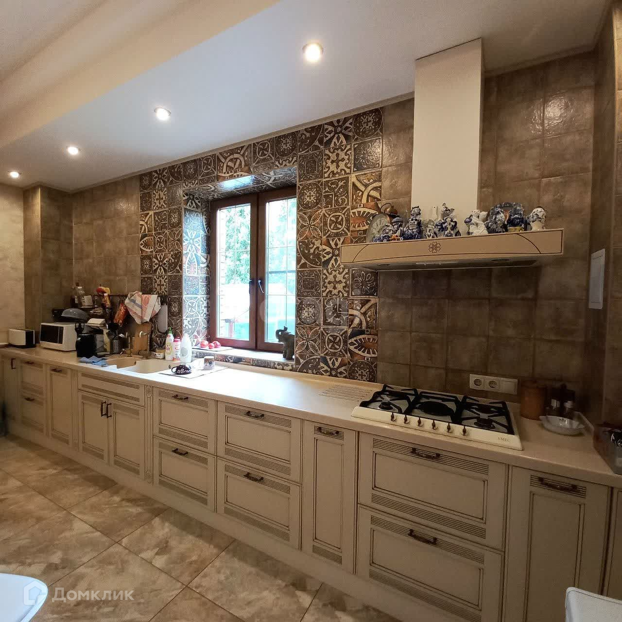 - На кухне остается кухонный гарнитур фирмы "Мария", остров со встроенной техникой, духовым шкафом, посудомоечной машиной, вытяжкой.