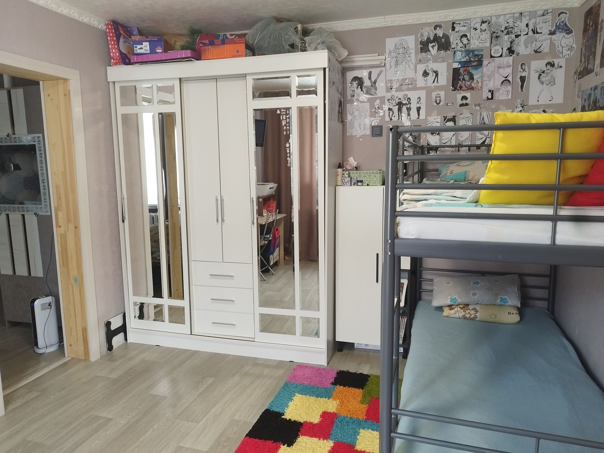 Большая комната угловая, но очень тёплая, за счёт дополнительной батареи. Блок, душ  и туалет на 3 комнаты,все старенькое, но чисто. Уборка по очереди раз в неделю. Соседи очень дружные и тихие. В шаговой доступности детский сад, школа, поликлиника, автобусная остановка, магазины (Магнит, Пятёрочка,Совёнок) , почта, сдек, озон, валдберис, аптека. В квартире частично остаётся мебель :кухня, стол и стулья, большой вместительный шкаф и небольшой диван (не тот что на фото).Wi-Fi,  телевидение Wink ,камера видеонаблюдения.ТОРГ!!!!!!!