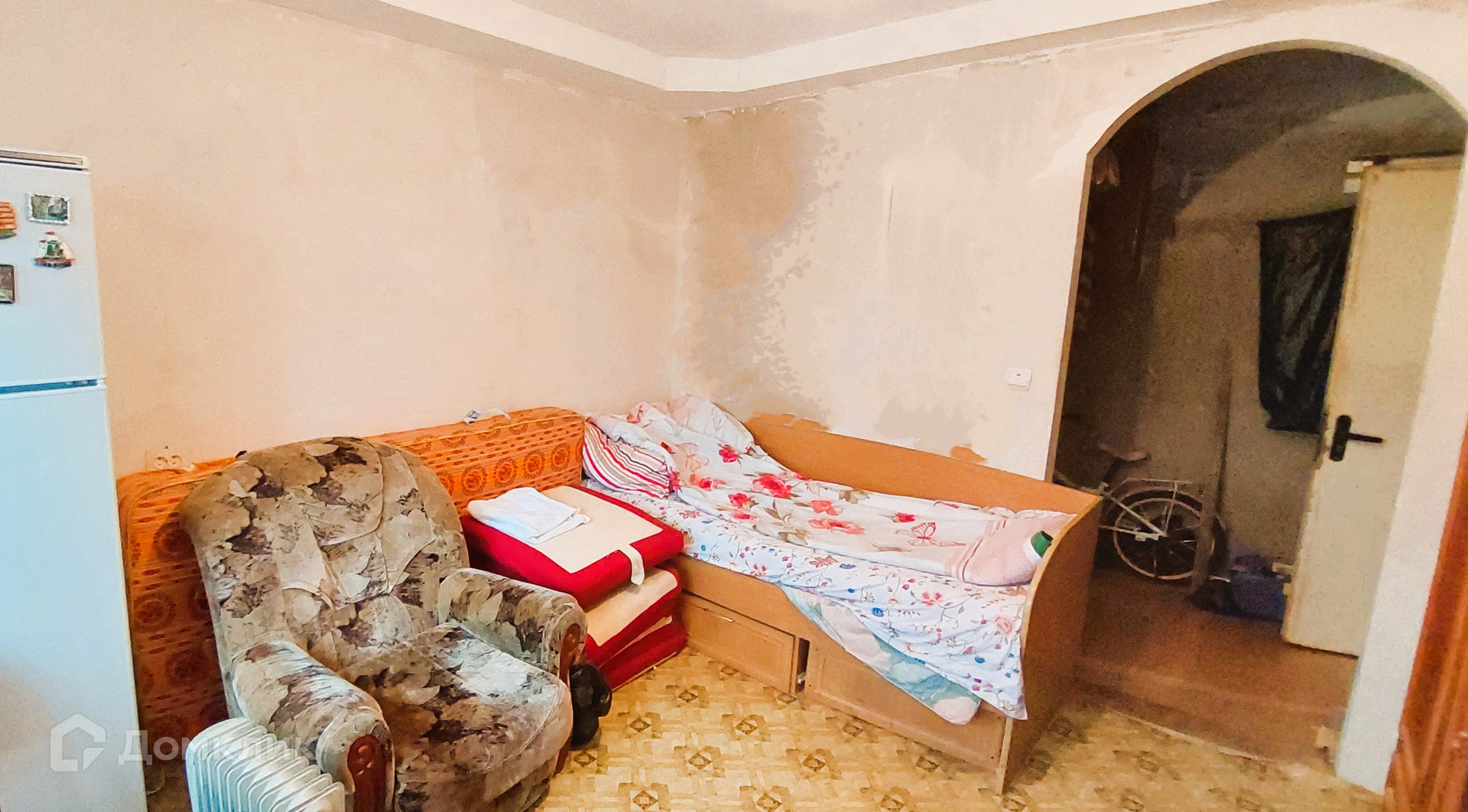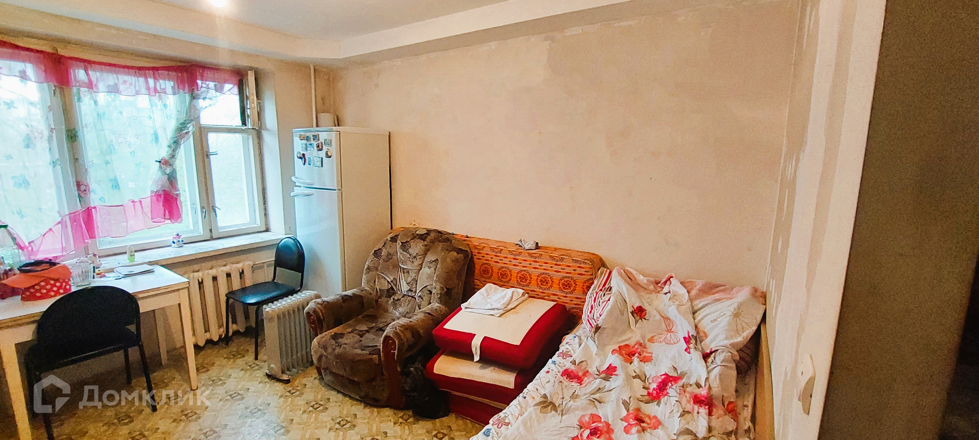 Комната чистая, светлая, очень теплая. Недавно были проведены ремонтные работы: выровнены стены, сделан потолочный короб с электрикой для врезных лампочек, постелен новый линолеум. Отдельно выделена зона прихожей (планировалось поставить сан.узел, водопроводный стояк за стеной - можно завести в комнату). Осталось поклеить обои. Есть БАЛКОН!!!