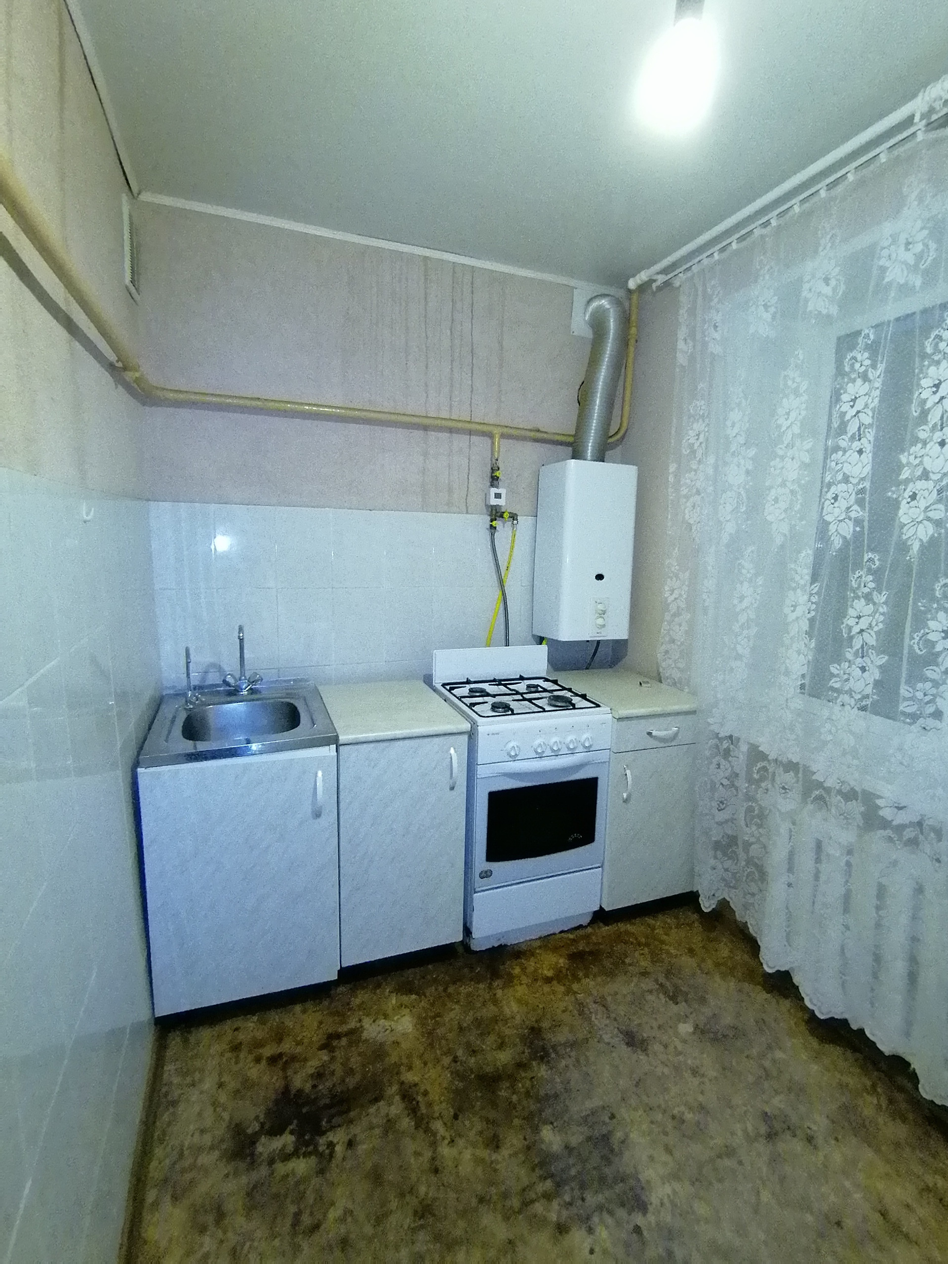 Квартира в хорошем состоянии, с газовой колонкой. Натяжные потолки. На кухне требуется покраска декоративной штукатурки и замена линолеума, соседи меняли радиаторы отопления, остались потеки. Квартира теплая, угловая. соседи хорошие, тихие. Установлена металлическая дверь, в доме домофон. напротив магазин "Магнит", в 50 метрах остановка маршрутки №6. В квартире никто не прописан, свободная. документы все есть. Мебель вся остается.