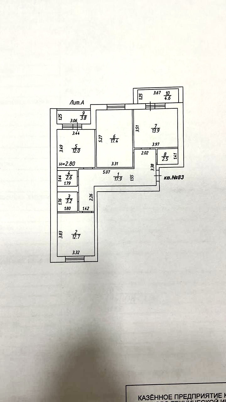 ✅Квартира- состоит из трех комнат 1-ая комната 17.4 кв.м 2-ая комната 13.9 кв.м. 3-ая 12.1 кв.м . Кухня -12 кв.м . Две застекленные лоджии по 3.5 кв.м.