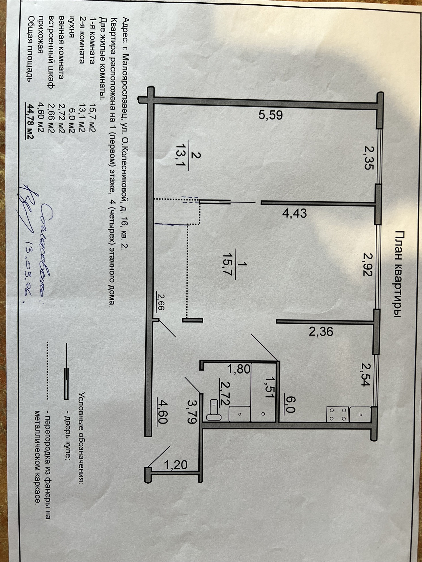 Общая площадь 44.8 м2