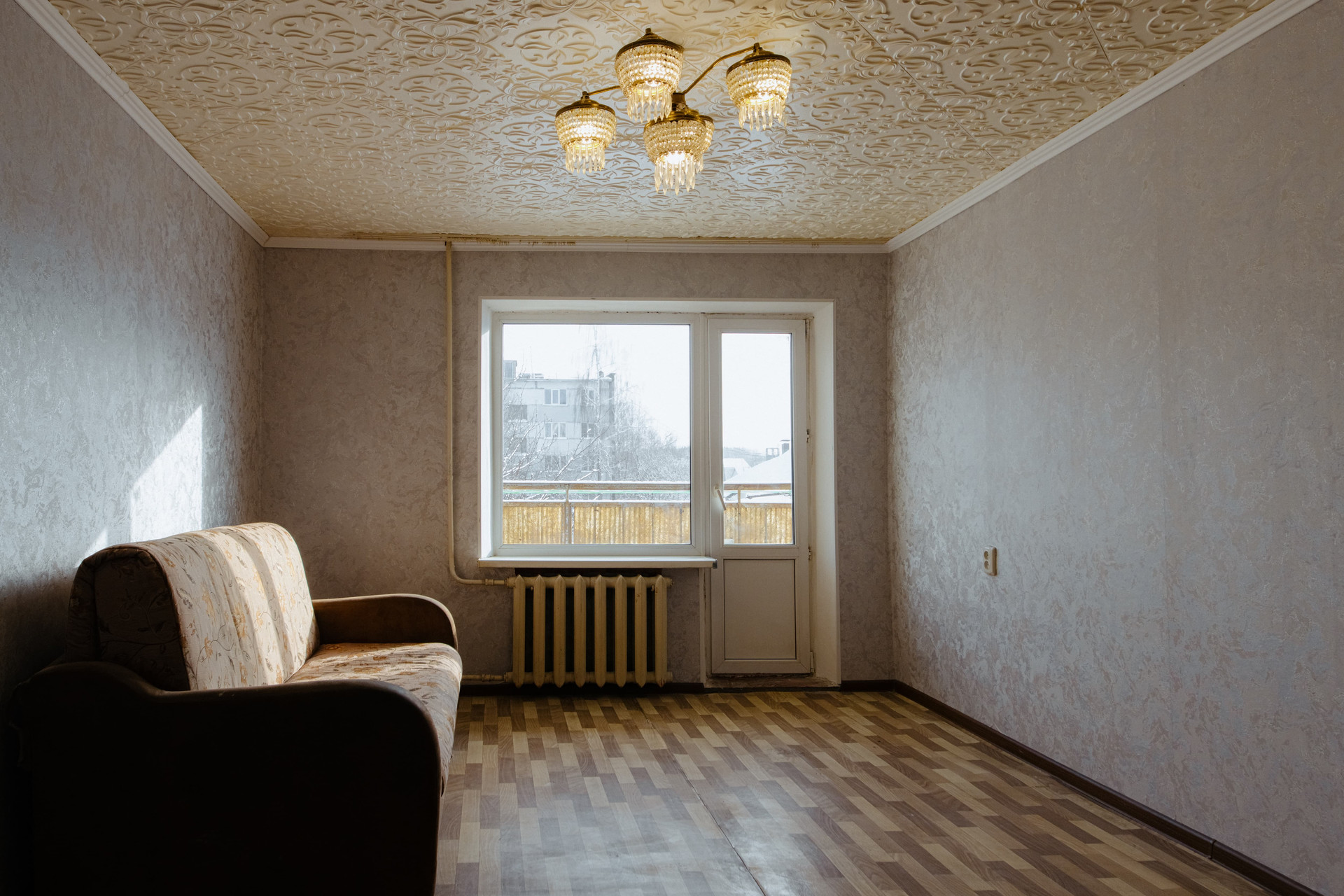 В квартире: пластиковые окна, бирюзовая кухня, пол линолеум, диван, cаун зел с ванной, раковина, стиральная машина, газовая плита. Есть все необходимое чтобы заехать и жить!