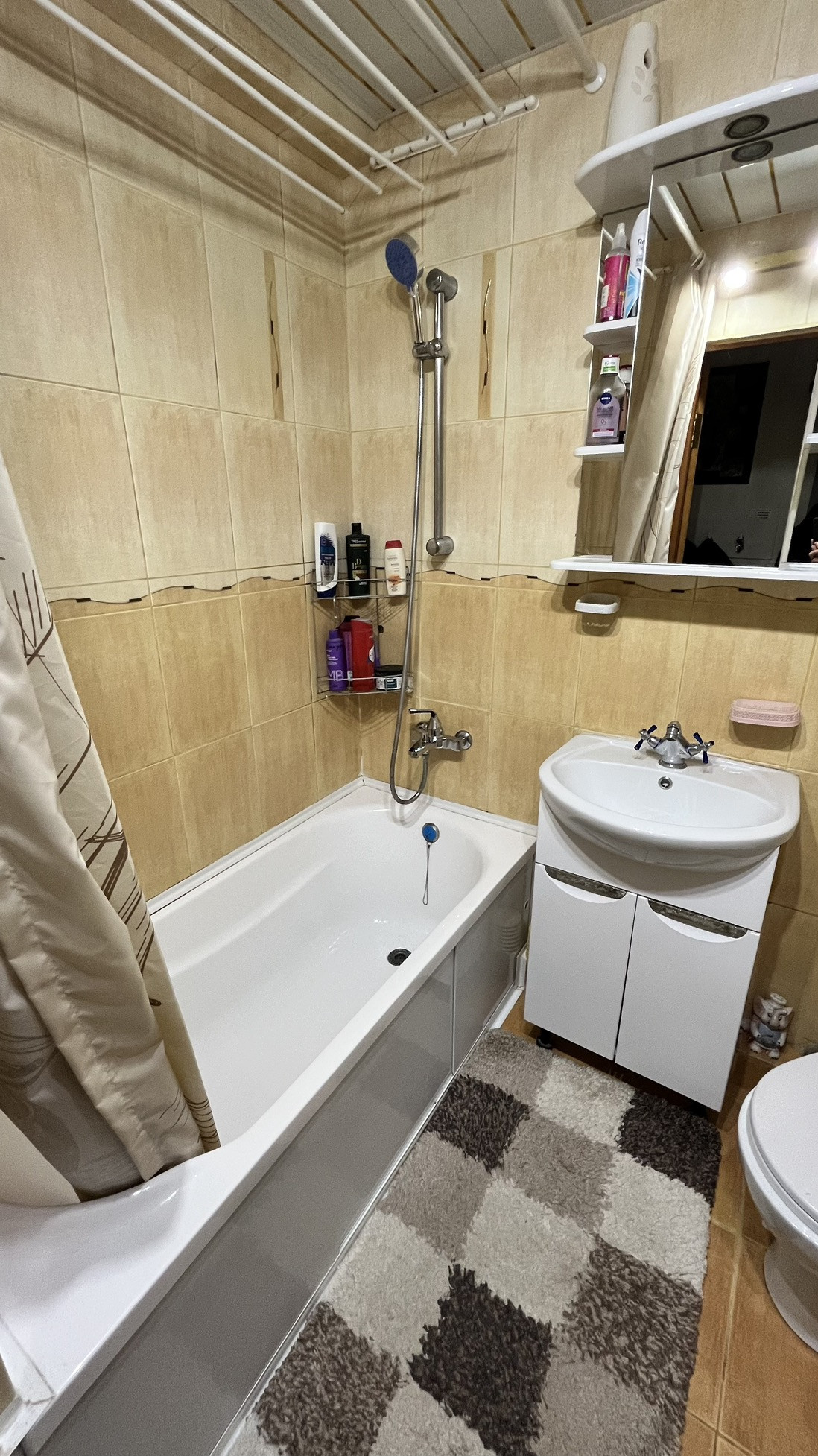 В квартире установлена газовая колонка, поэтому горячая вода в квартире есть всегда.