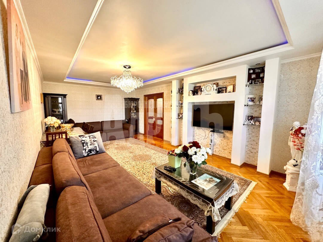 Общая площадь квaртиpы - 125 кв.м. Три paздeльные комнаты - 28,4 кв.м и 15,4 кв.м и 17,7 кв.м кухня - 16,5 кв.м, раздельный санузел.