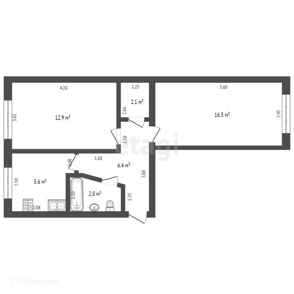 Общая площадь 46.3 м2
