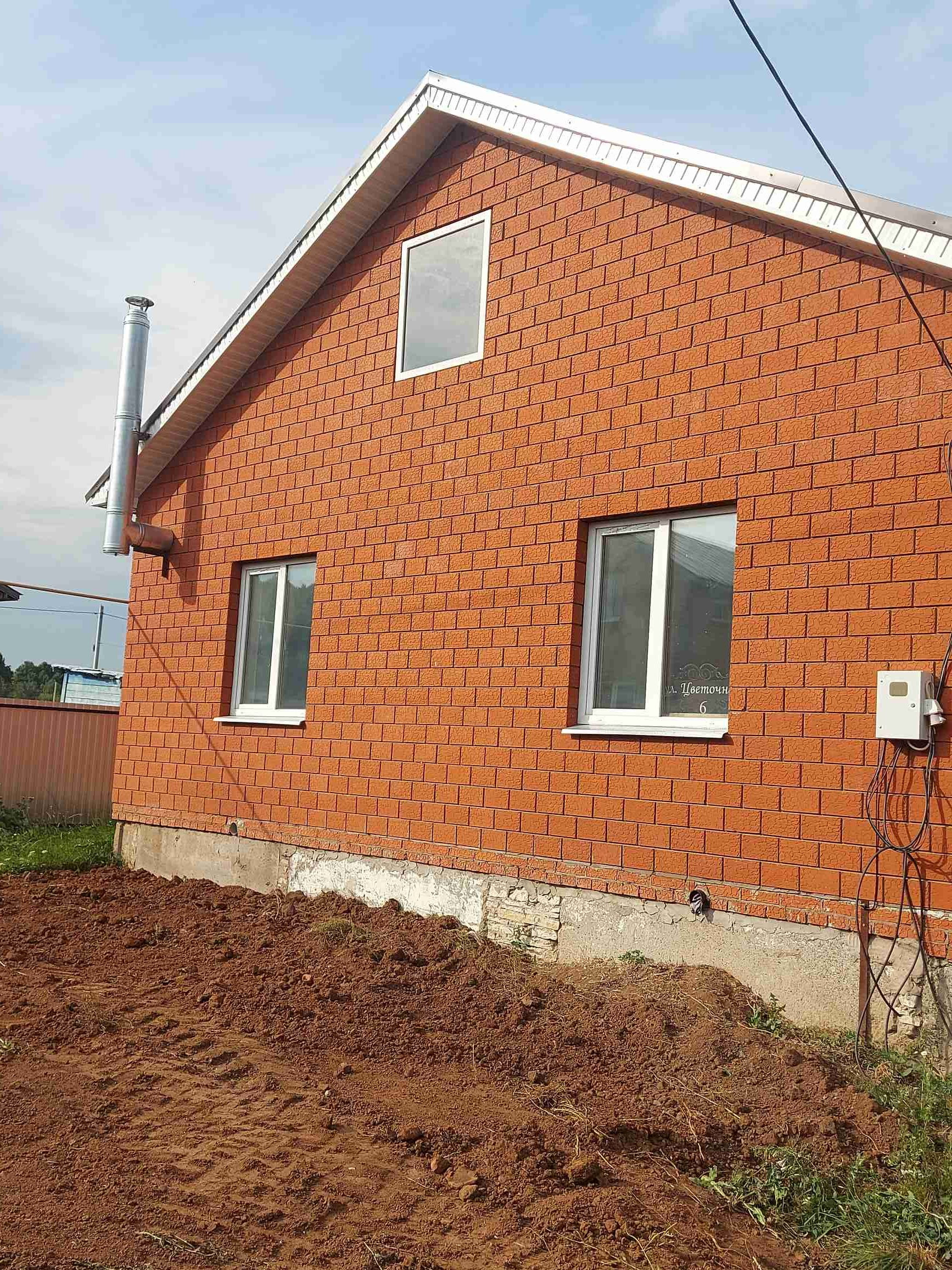 Новый светлый дом, предчистовая отделка, нет только обоев и потолков. Газ, свет, вода в доме, канализация. Отопление подключено. Погреб в доме. Имеются дополнительные постройки: гараж и хозблок.