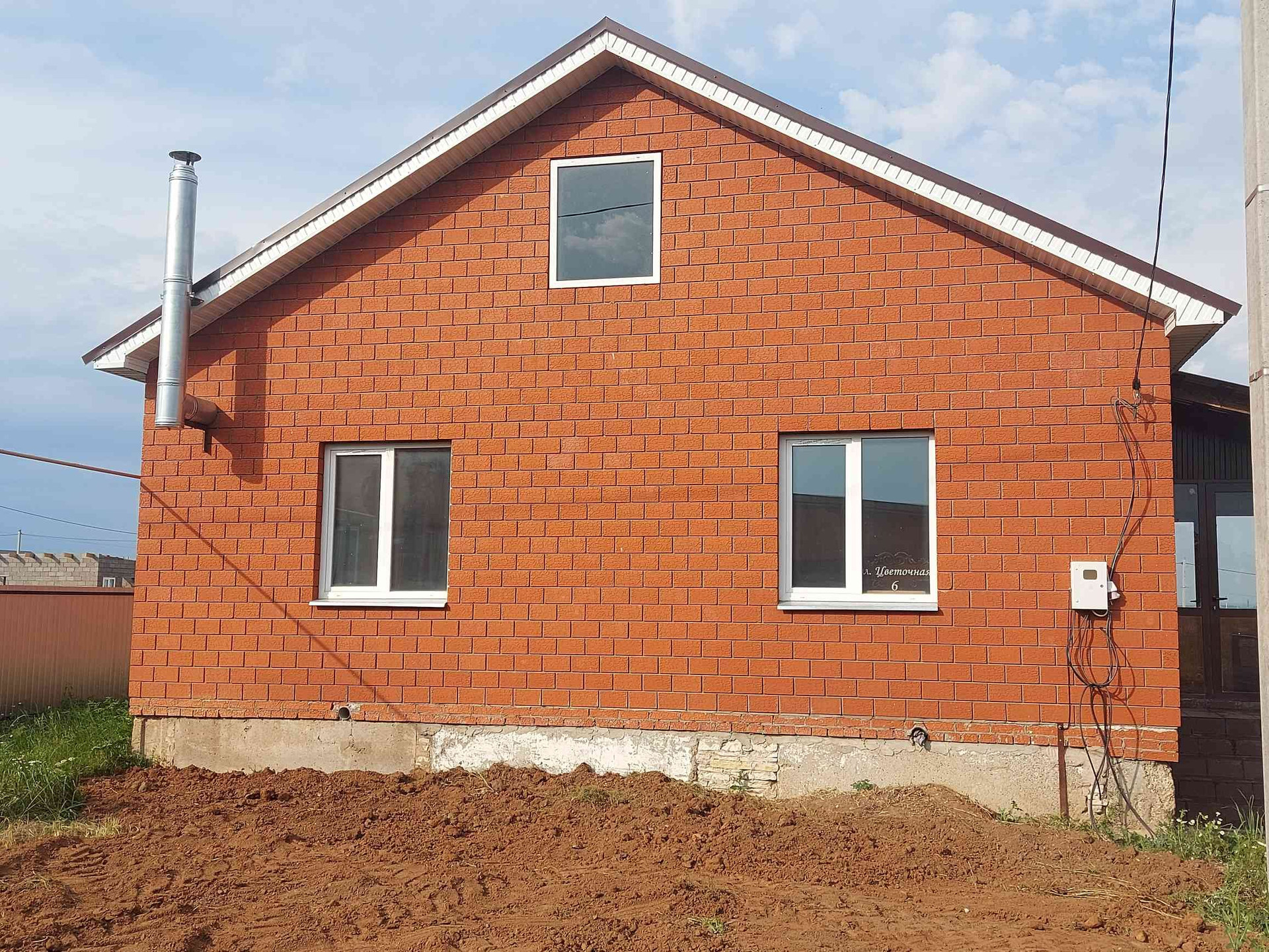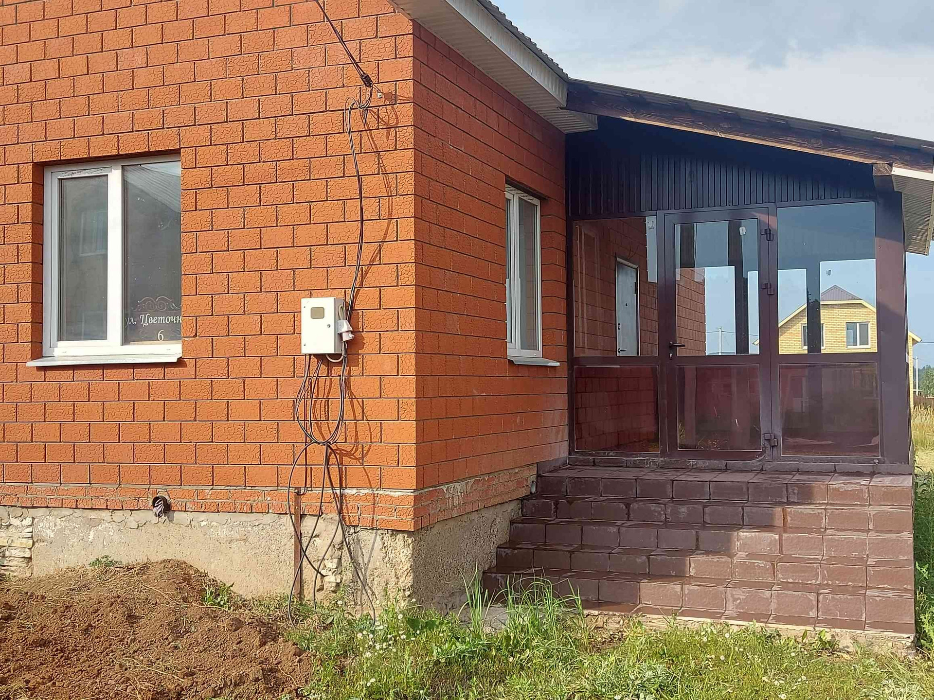 Метров за 10 проходит дорога из щебня, вдоль улицы тоже скоро должна быть. Соседние дома уже обживаются. За домом начали возводить большую детскую площадку.