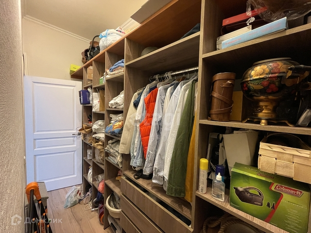 Гостиная 24 кв.м. разделена на 2 части: гардеробную 5 кв.м. и гостевую зону - место встреч членов семьи за просмотром телевизора.