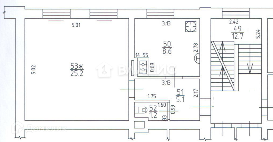 Жилая площадь 25.2 м2