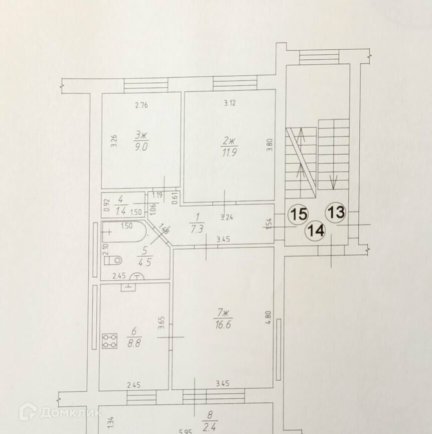 Общая площадь 59.5 м2