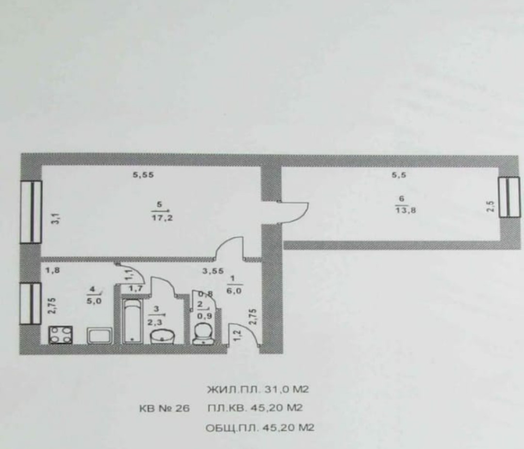 Общая площадь 45.2 м2