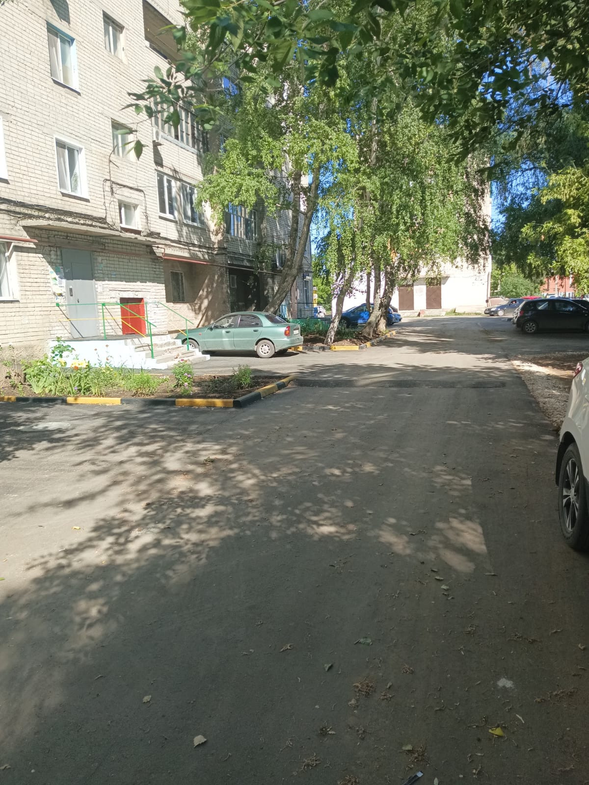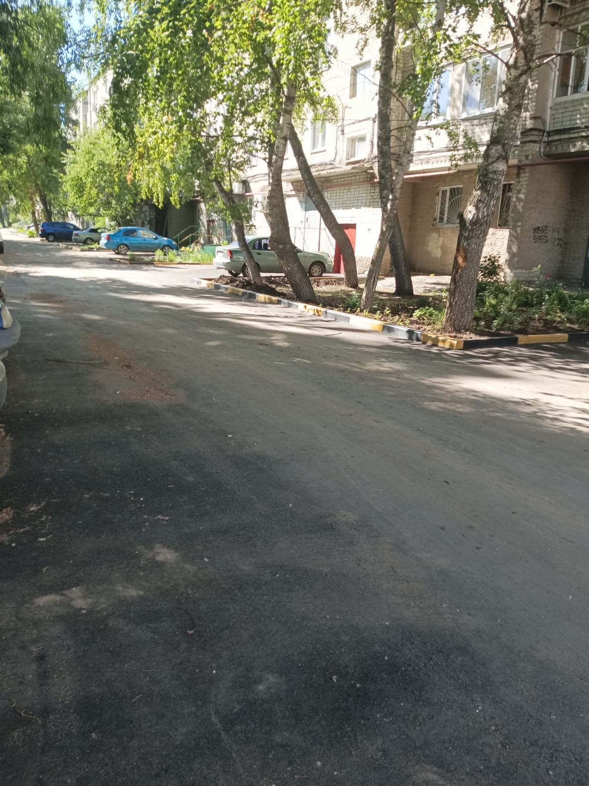 Тихий двор, новое асфальтовое покрытие.