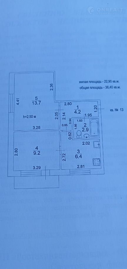Общая площадь 36.4 м2